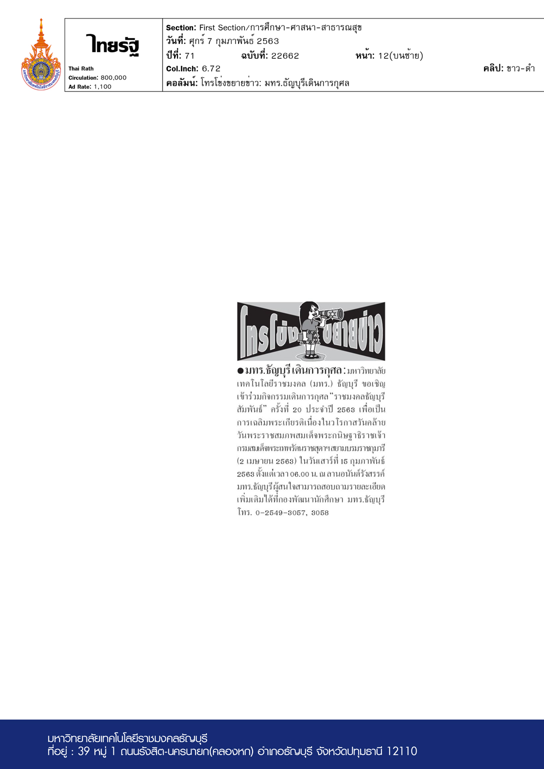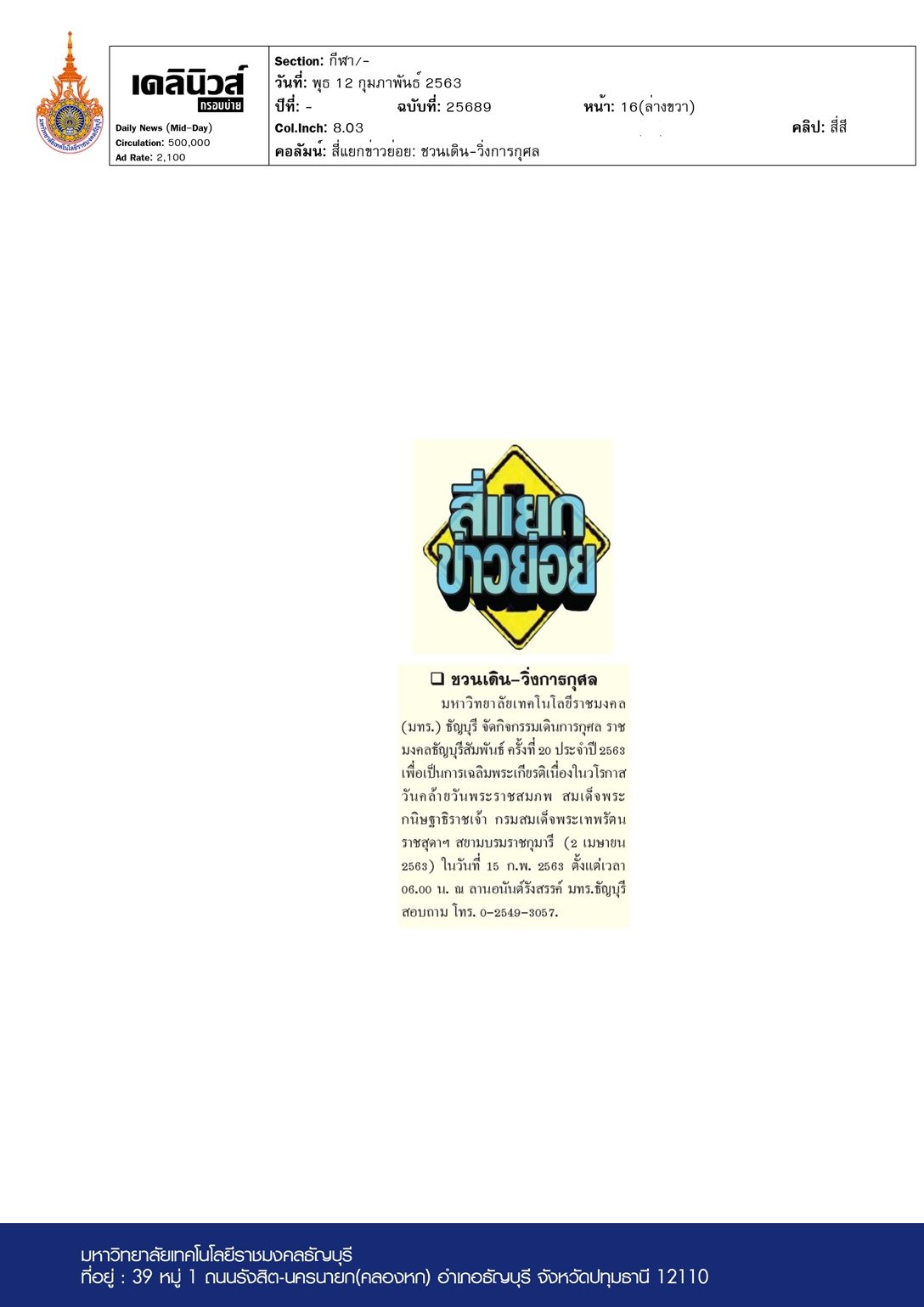 คอลัมน์ โทรโข่งขยายข่าว: มทร.ธัญบุรีเดินการกุศล