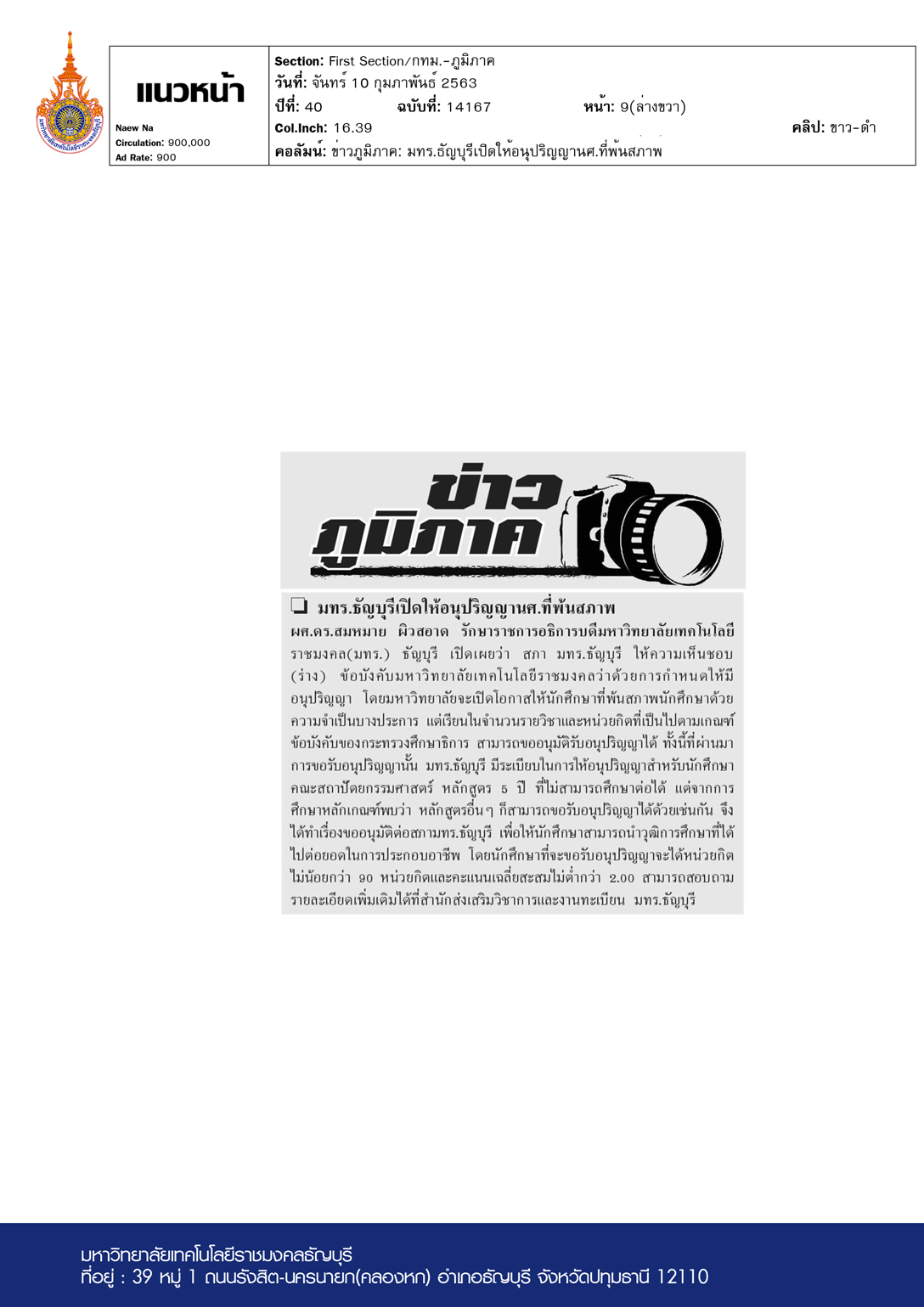 คอลัมน์ ข่าวภูมิภาค: มทร.ธัญบุรีเปิดให้อนุปริญญานศ.ที่พ้นสภาพ