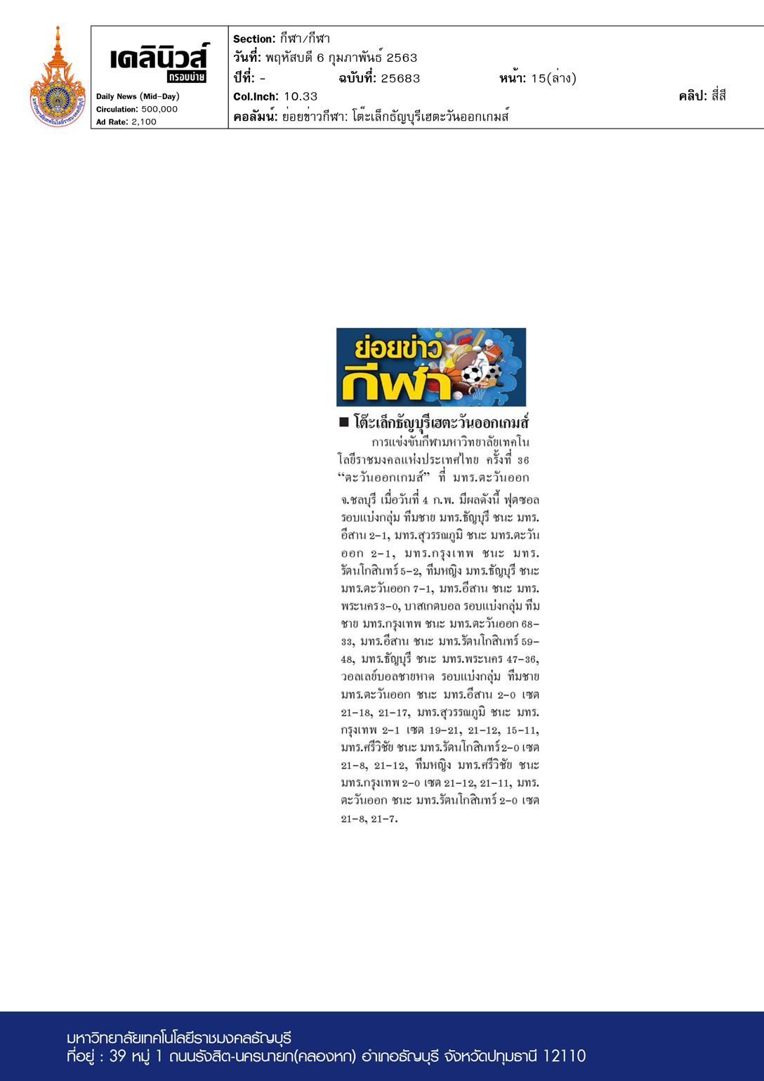 เดลินิวส์ (กรอบบ่าย) ฉบับวันที่ 6 กุมภาพันธ์ พ.ศ. 2563 […]