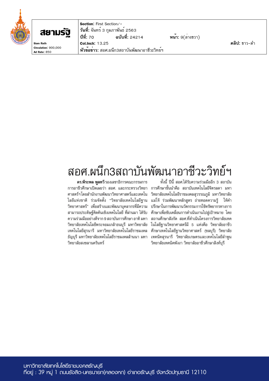 ตามที่มหาวิทยาลัยเทคโนโลยีราชมงคล (มทร.) ธัญบุรี และ จั […]