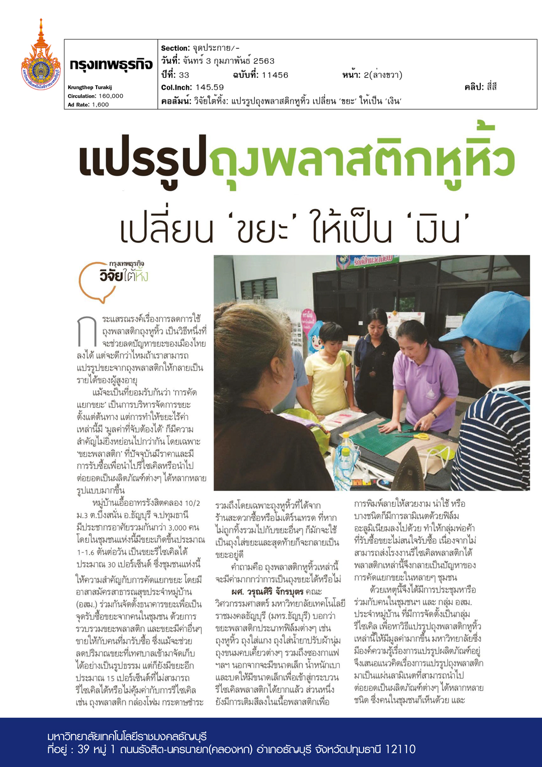 คอลัมน์ วิจัยใต้หิ้ง: แปรรูปถุงพลาสติกหูหิ้ว เปลี่ยน ‘ขยะ’ ให้เป็น ‘เงิน’