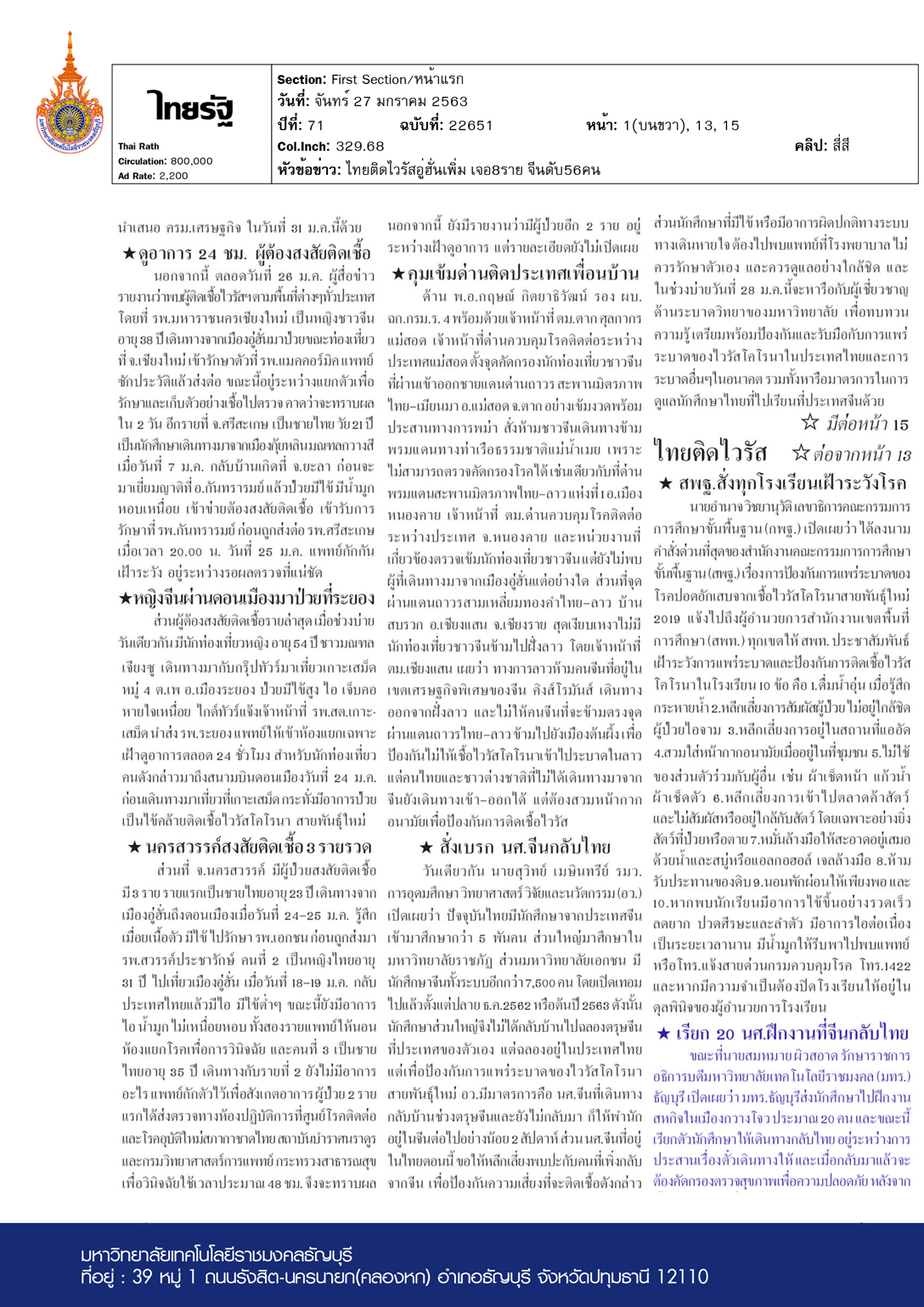 ไทยรัฐ ฉบับวันที่ 27 มกราคม พ.ศ. 2563 เรียก 20 นศ.ฝึกงา […]