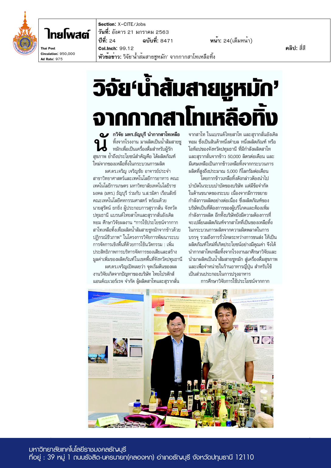 ไทยโพสต์ ฉบับวันที่ 21 มกราคม พ.ศ. 2563 นักวิจัย มทร.ธั […]