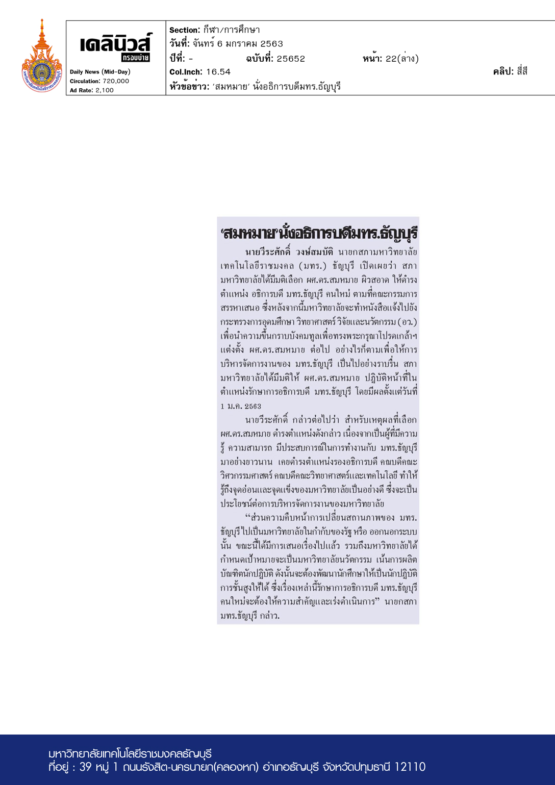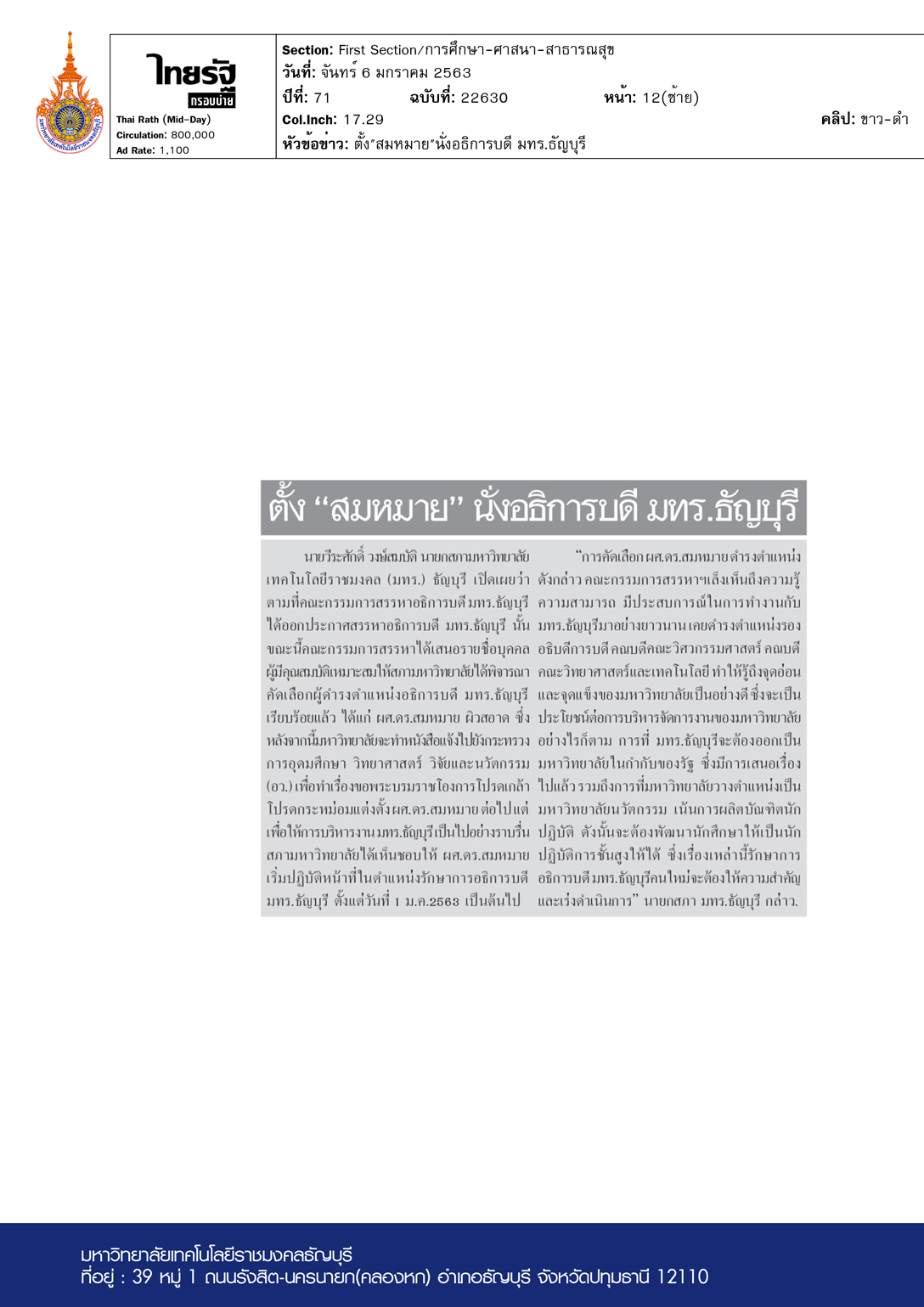 ‘สมหมาย’ นั่งอธิการบดีมทร.ธัญบุรี
