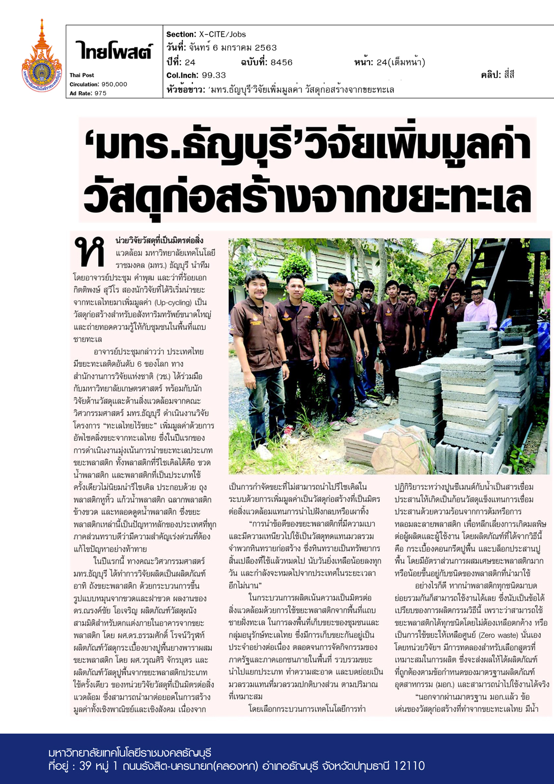 ไทยโพสต์ ฉบับวันที่ 6 มกราคม พ.ศ. 2563 หน่วยวิจัยวัสดุท […]