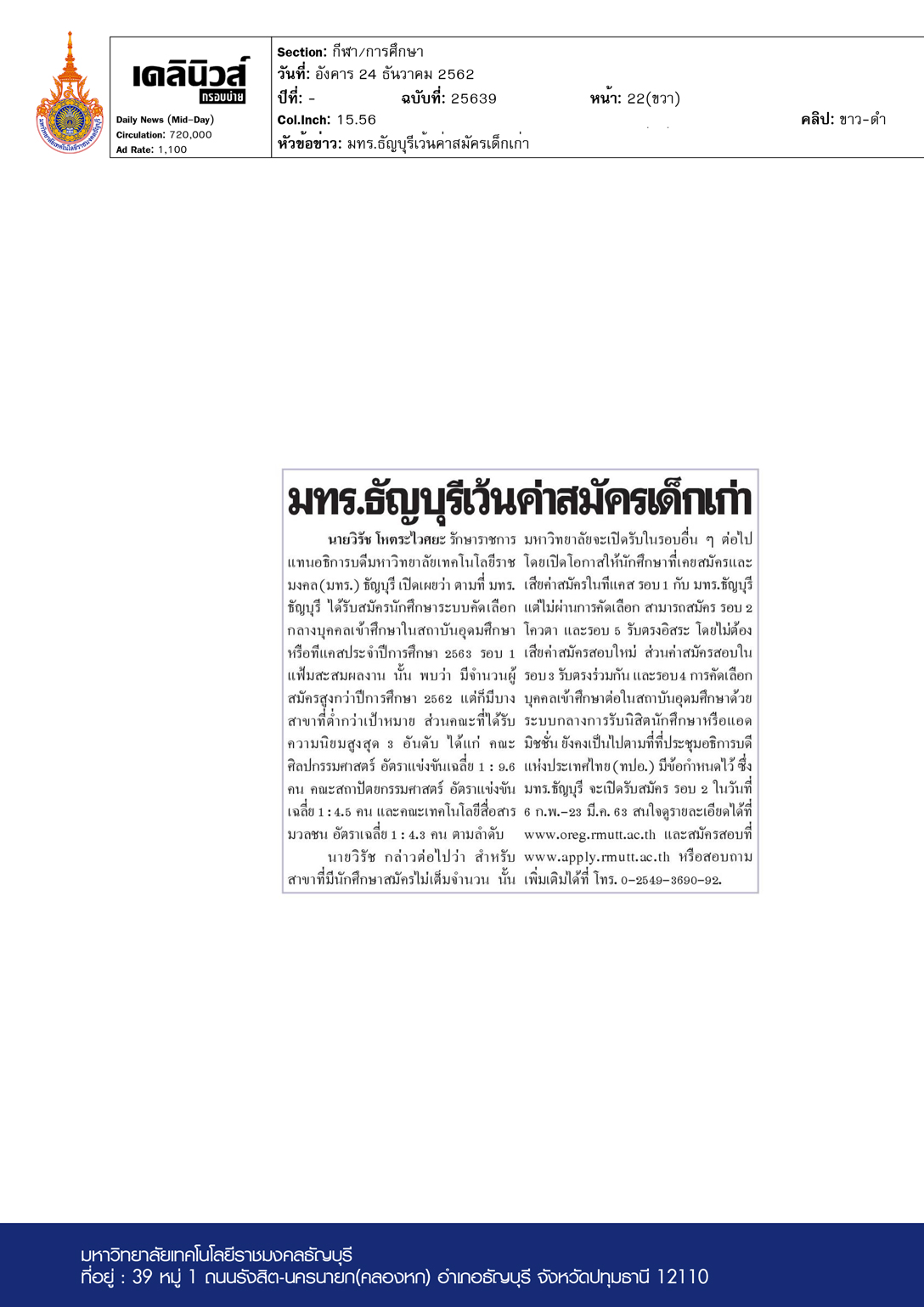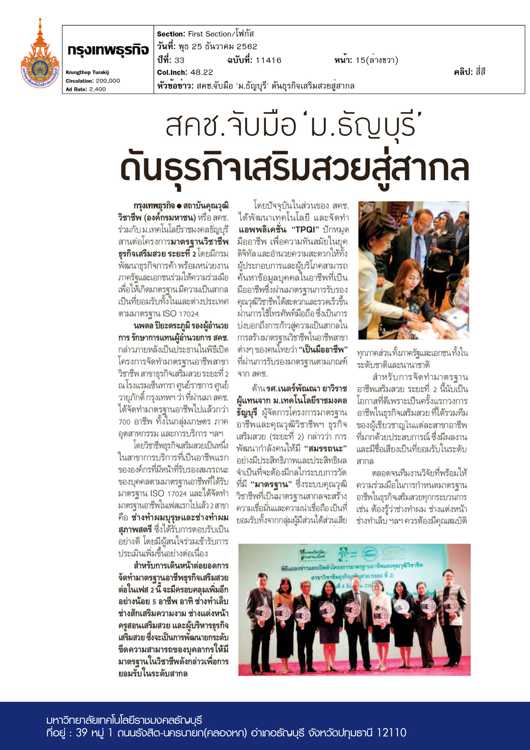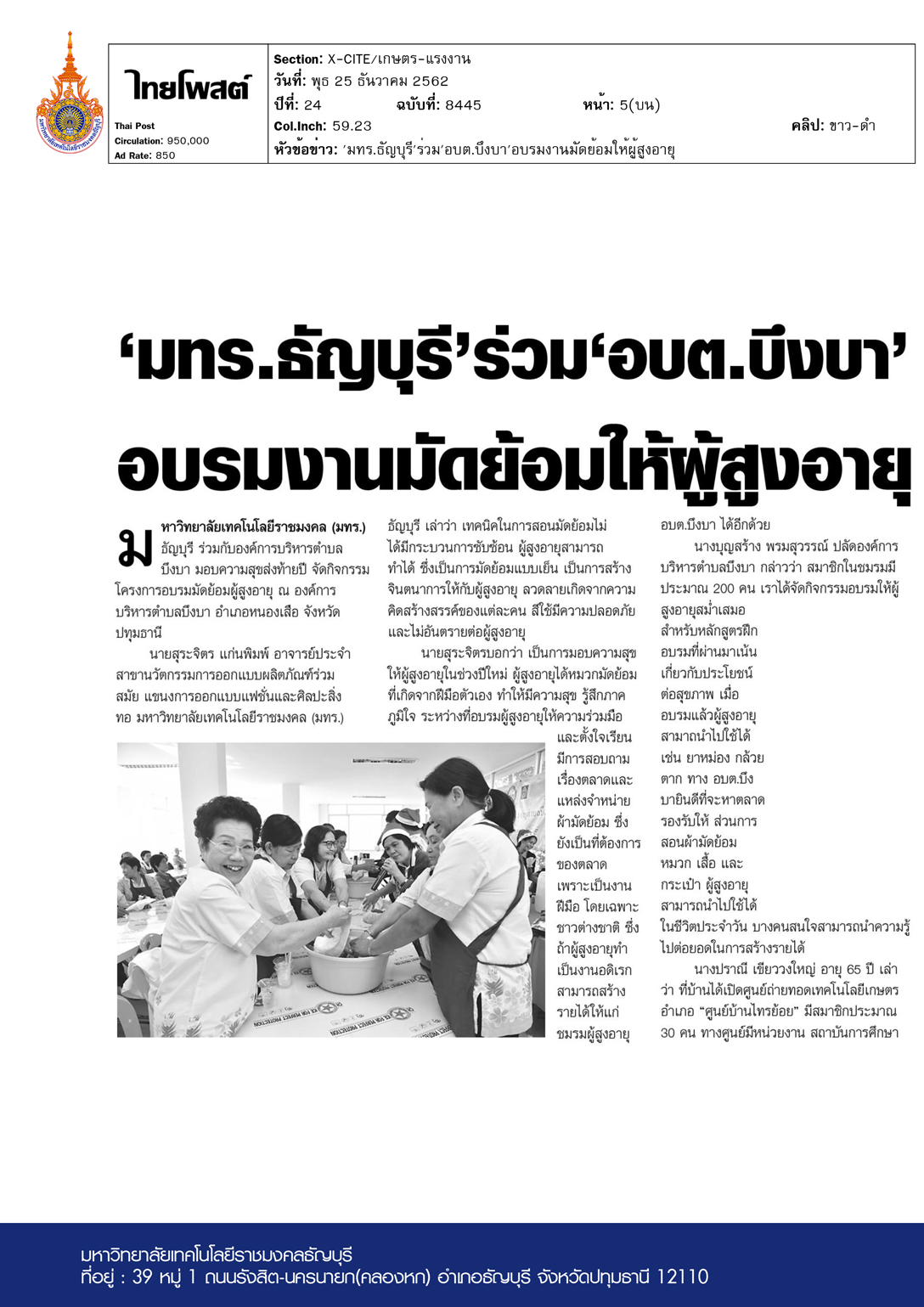 ไทยโพสต์ ฉบับวันที่ 25 ธันวาคม พ.ศ. 2562 มหาวิทยาลัยเทค […]