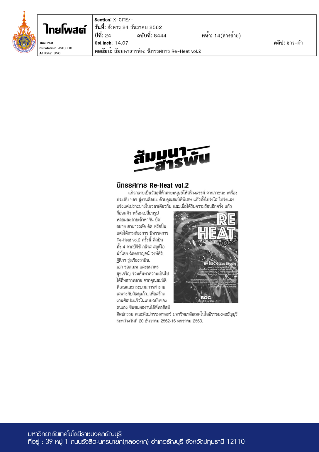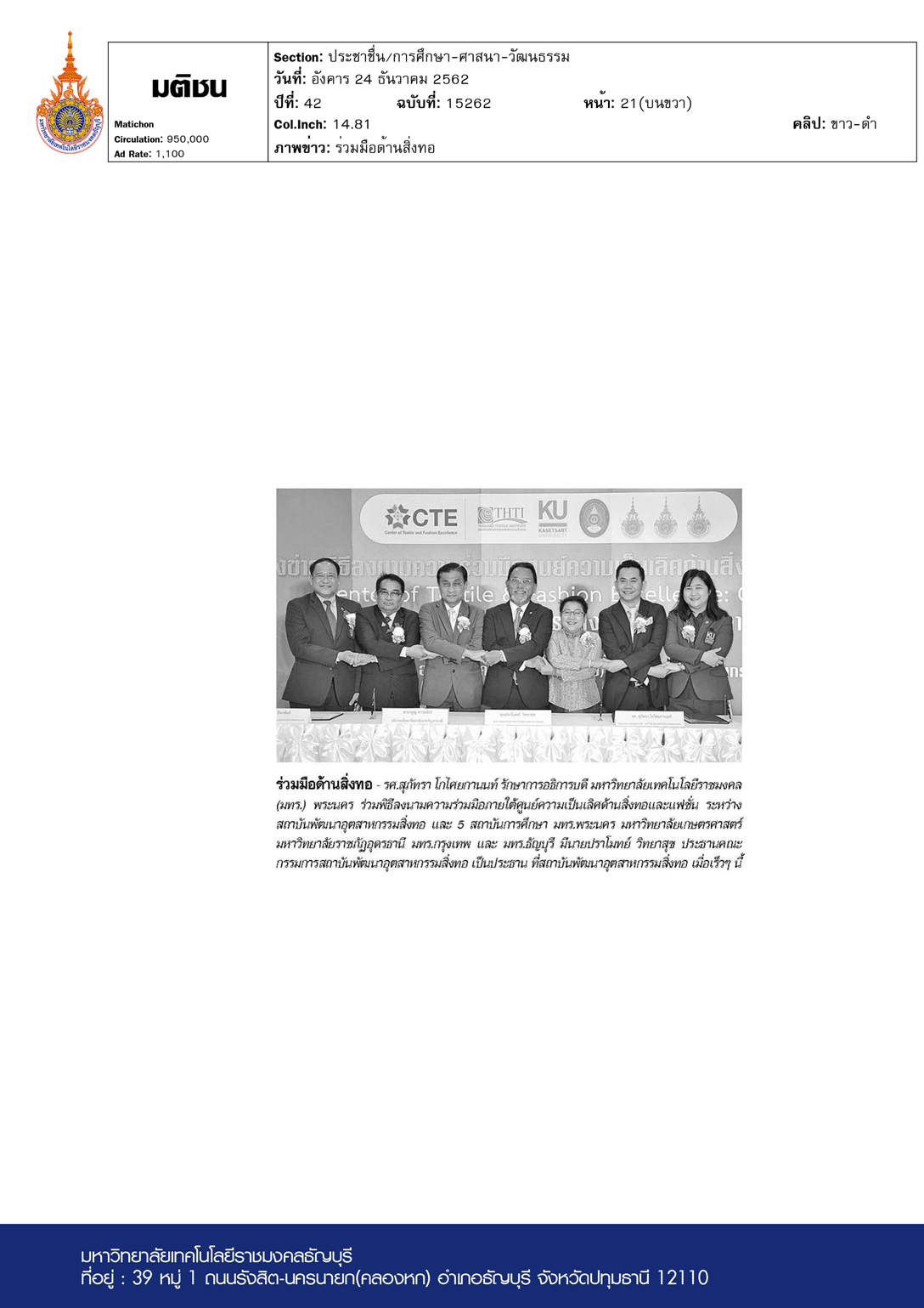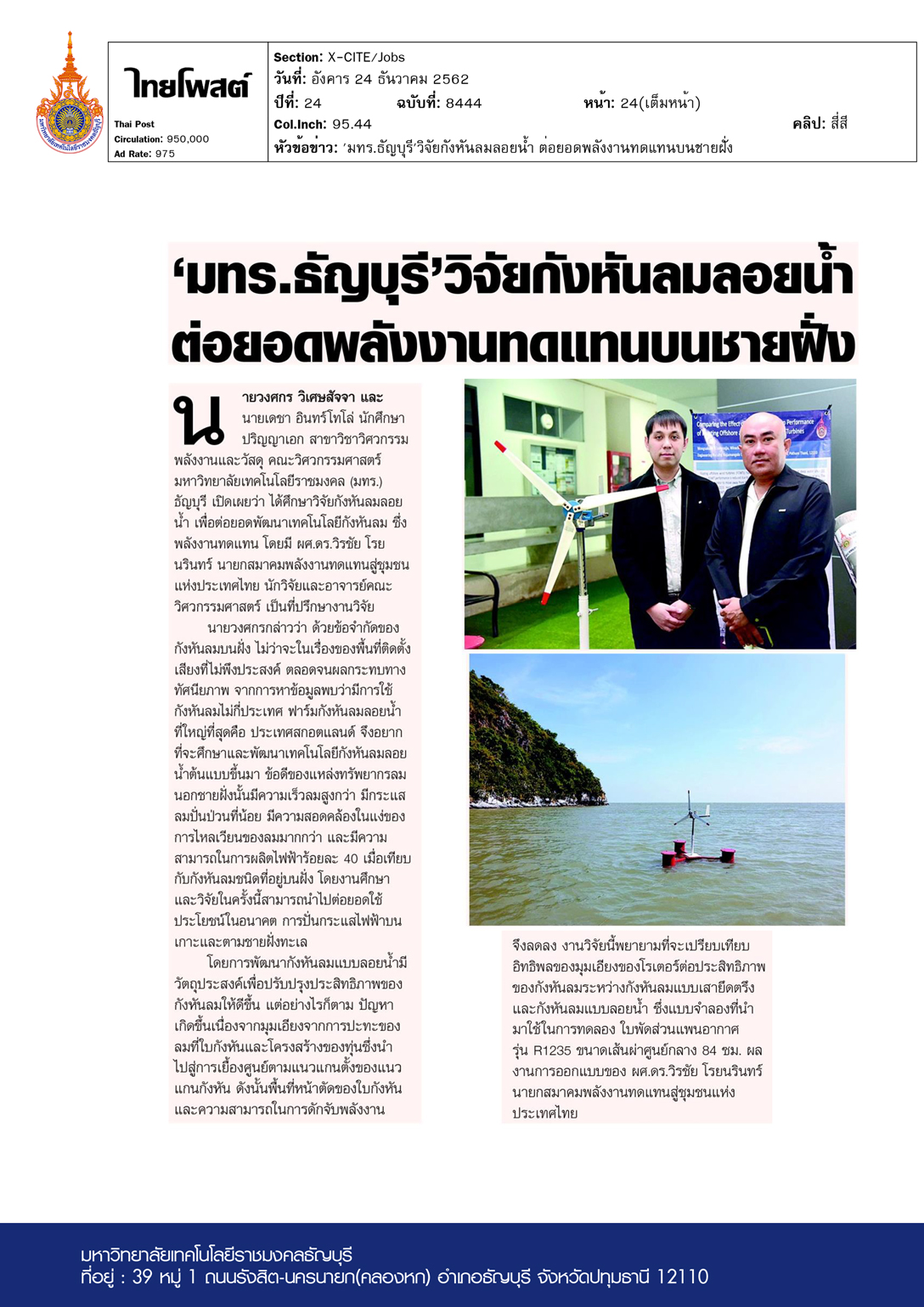 ไทยโพสต์ ฉบับวันที่ 25 ธันวาคม พ.ศ. 2562 มหาวิทยาลัยเทค […]