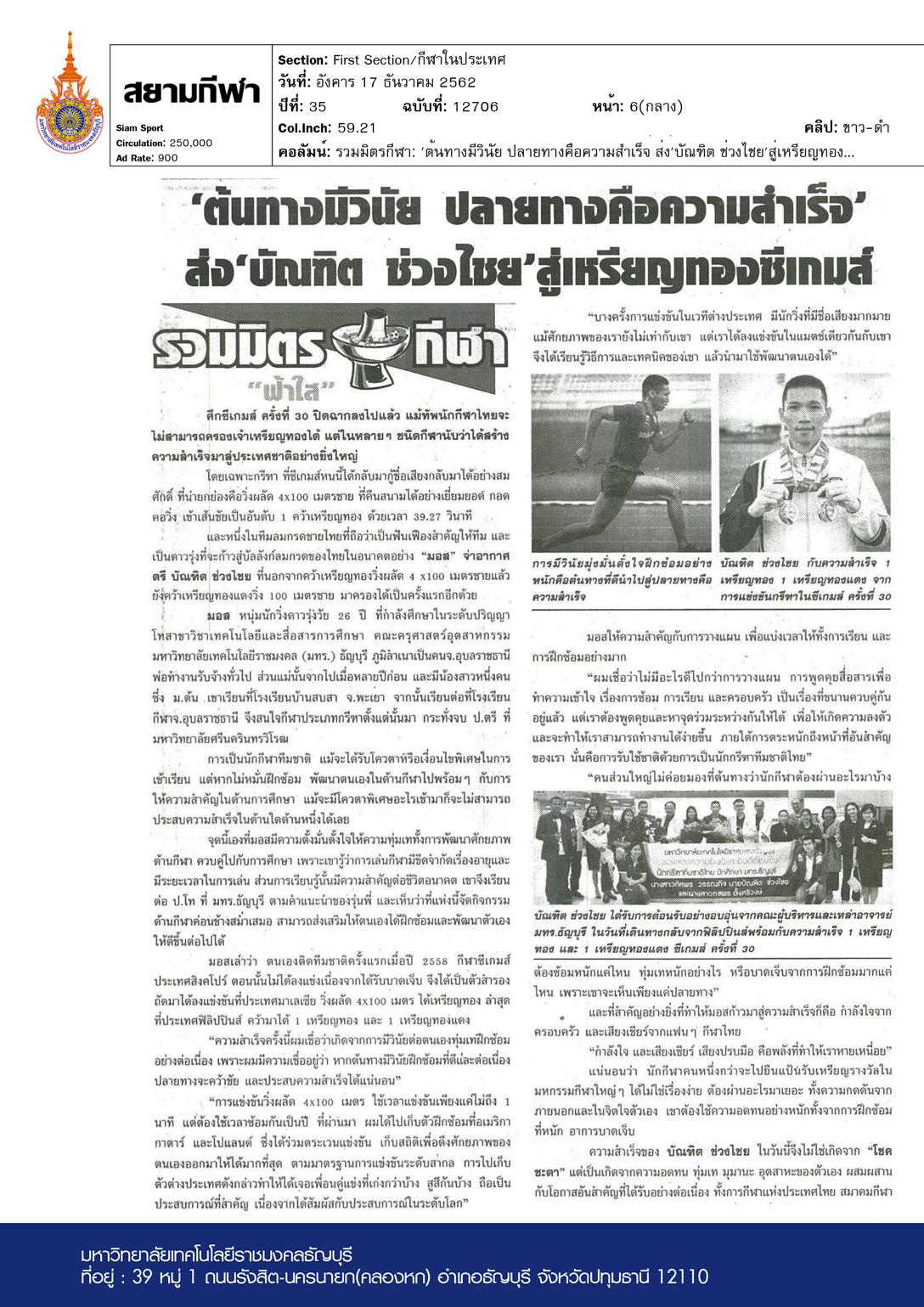 คอลัมน์ รวมมิตรกีฬา: ‘ต้นทางมีวินัย ปลายทางคือความสำเร็จ’ ส่ง’บัณฑิต ช่วงไชย’สู่เหรียญทองซีเกมส์