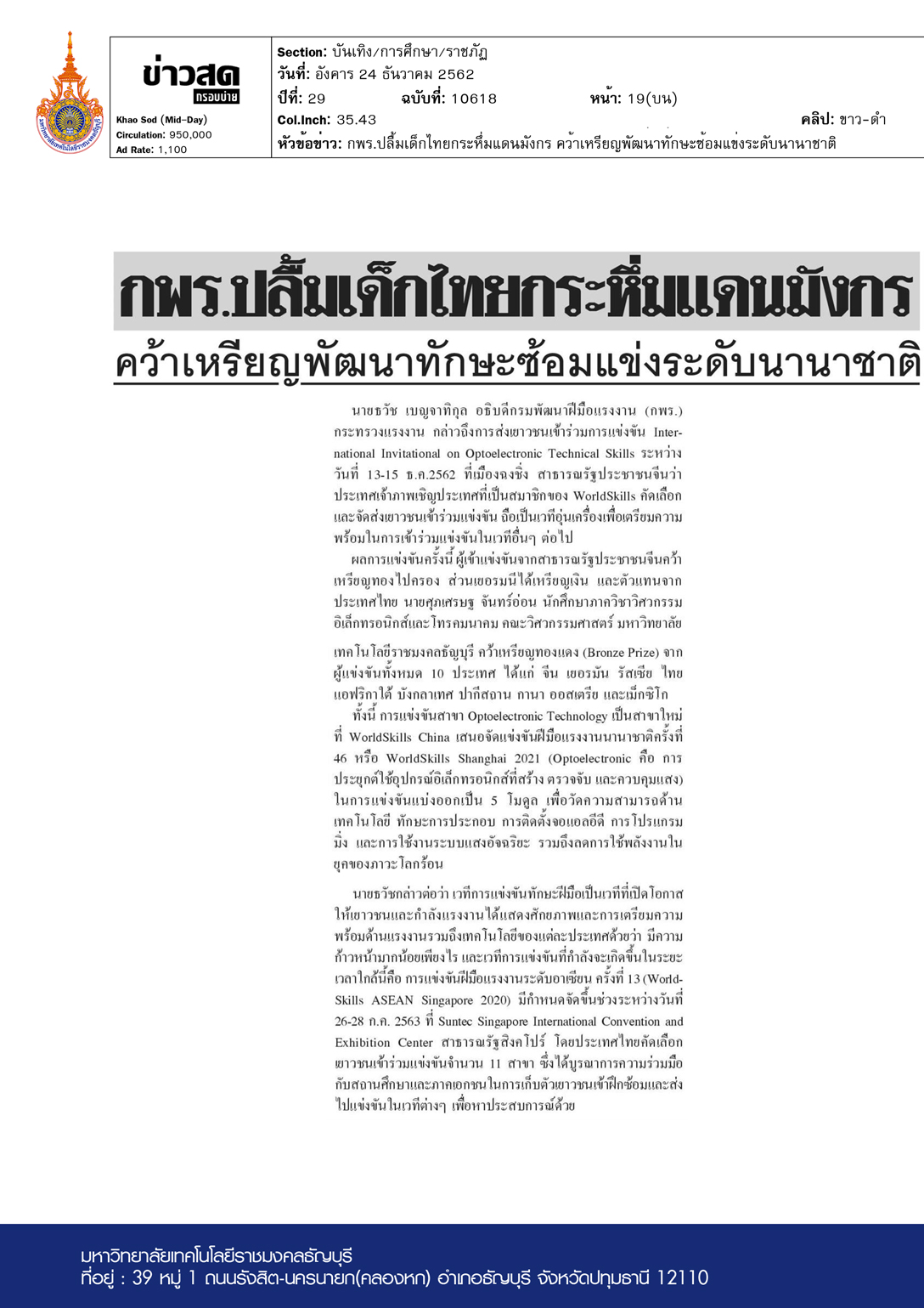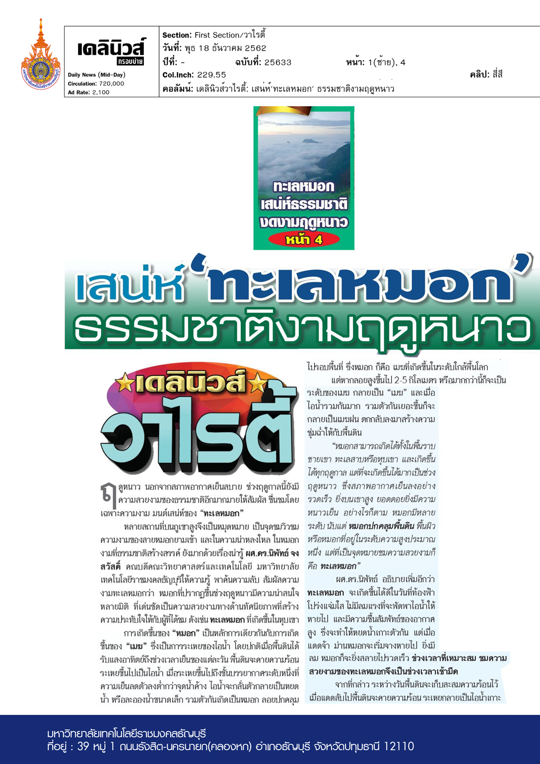 เดลินิวส์ (กรอบบ่าย) ฉบับวันที่ 19 ธันวาคม พ.ศ. 2562 ดร […]