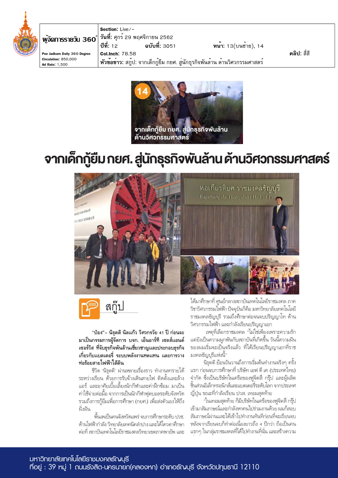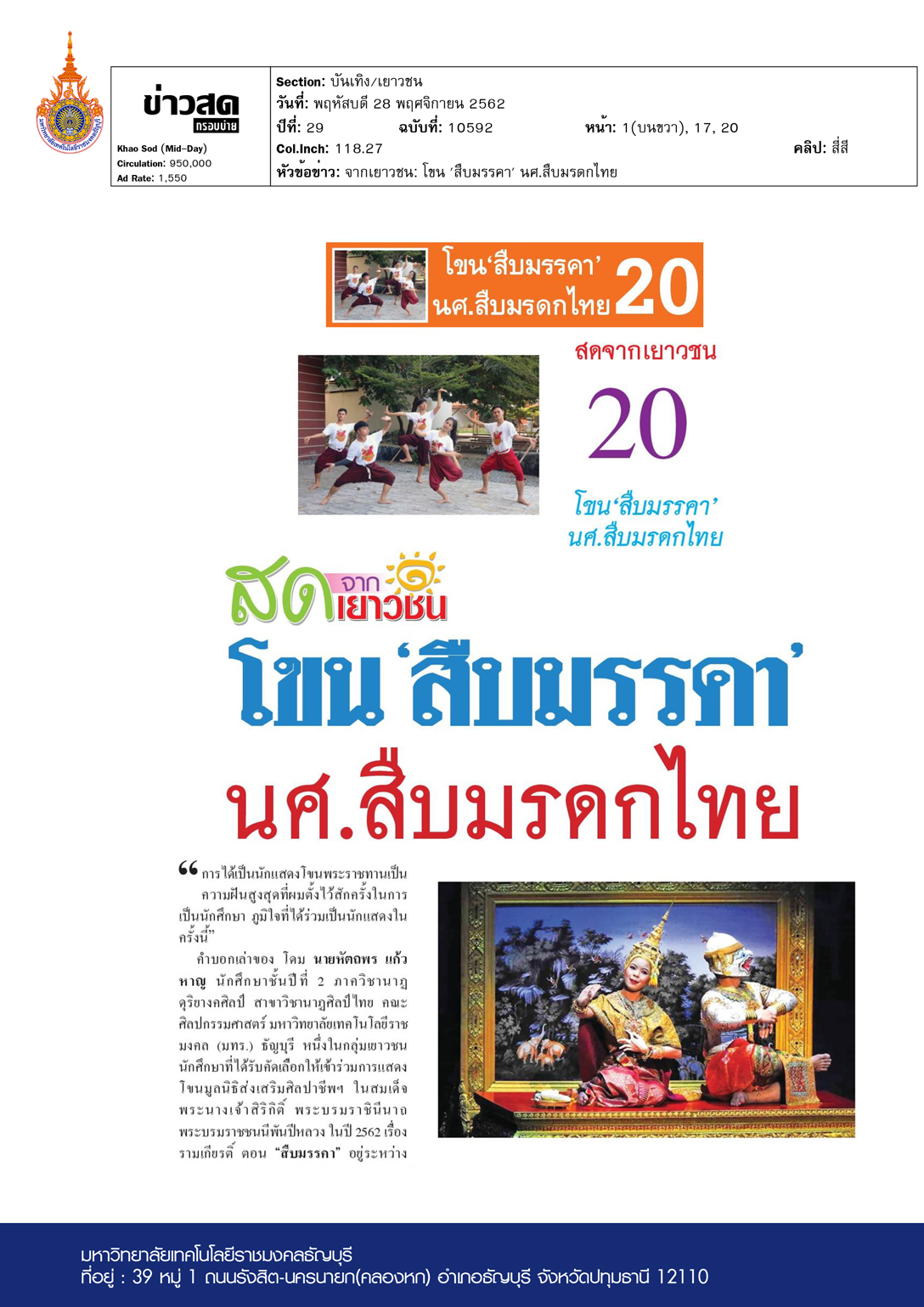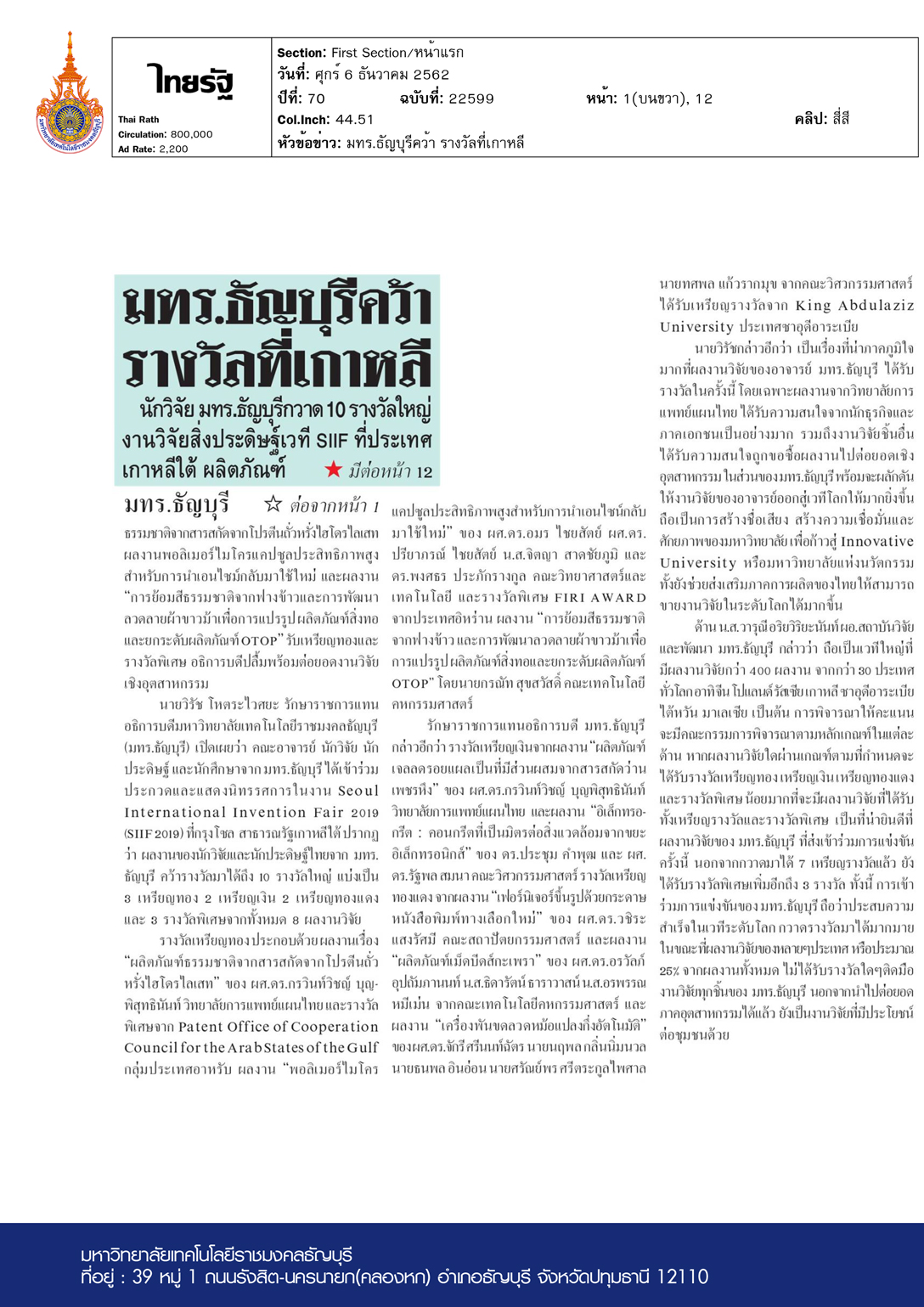 ไทยรัฐ ฉบับวันที่ 6 ธันวาคม พ.ศ. 2562 นักวิจัย มทร.ธัญบ […]