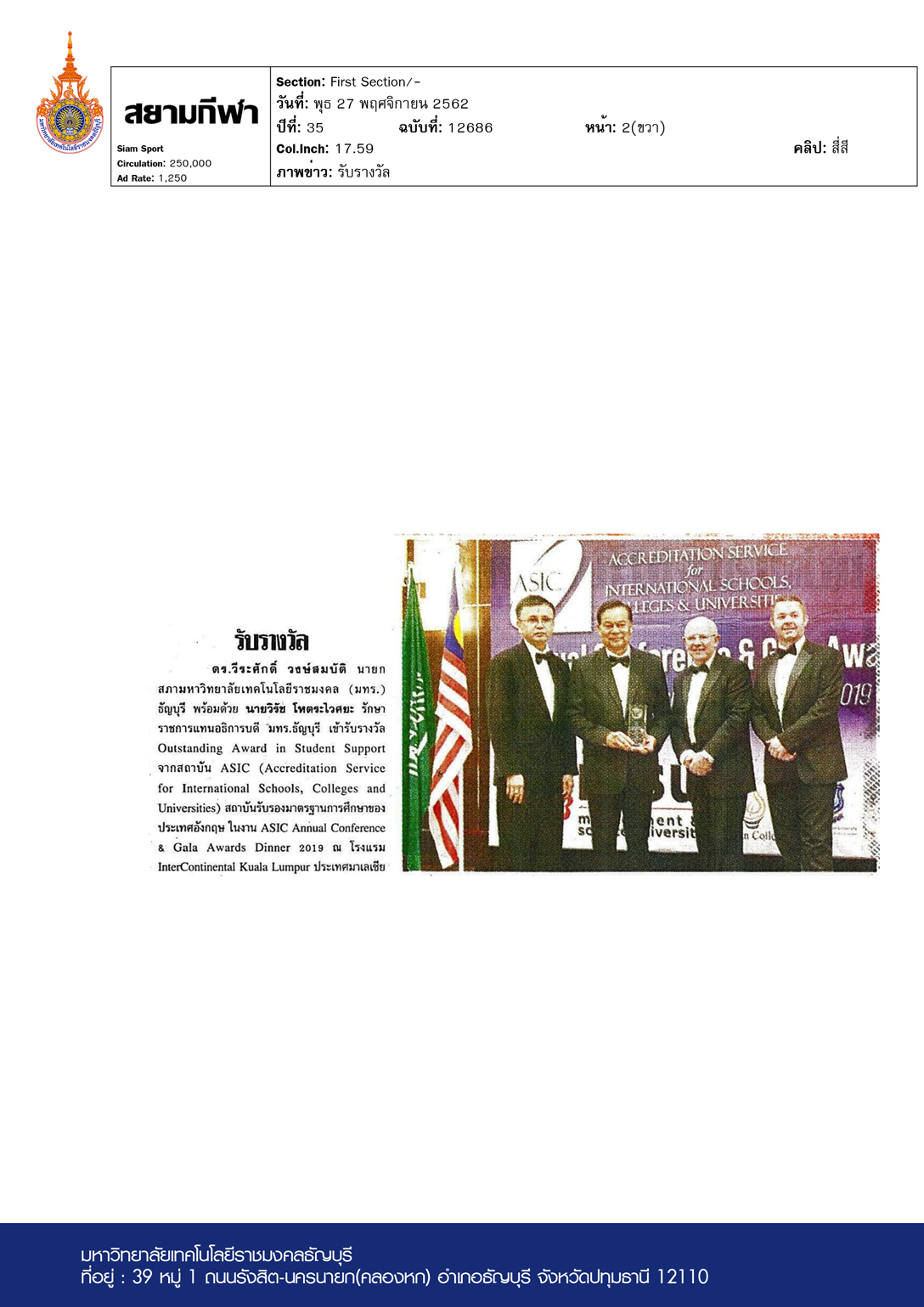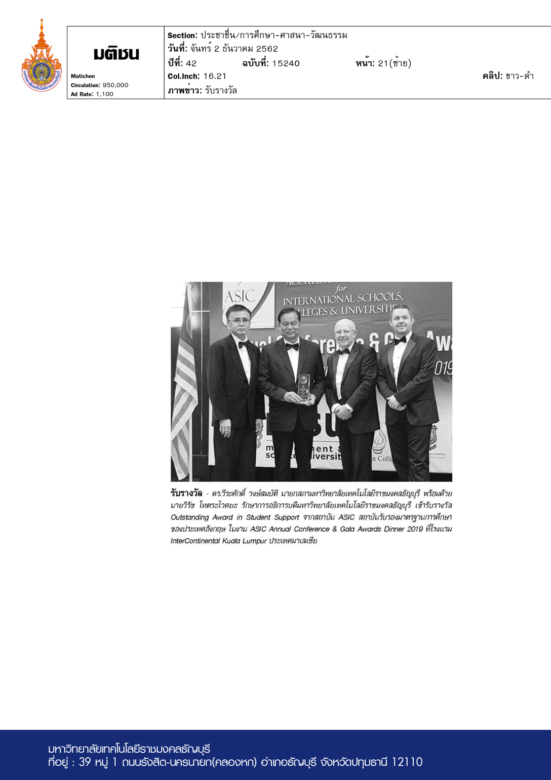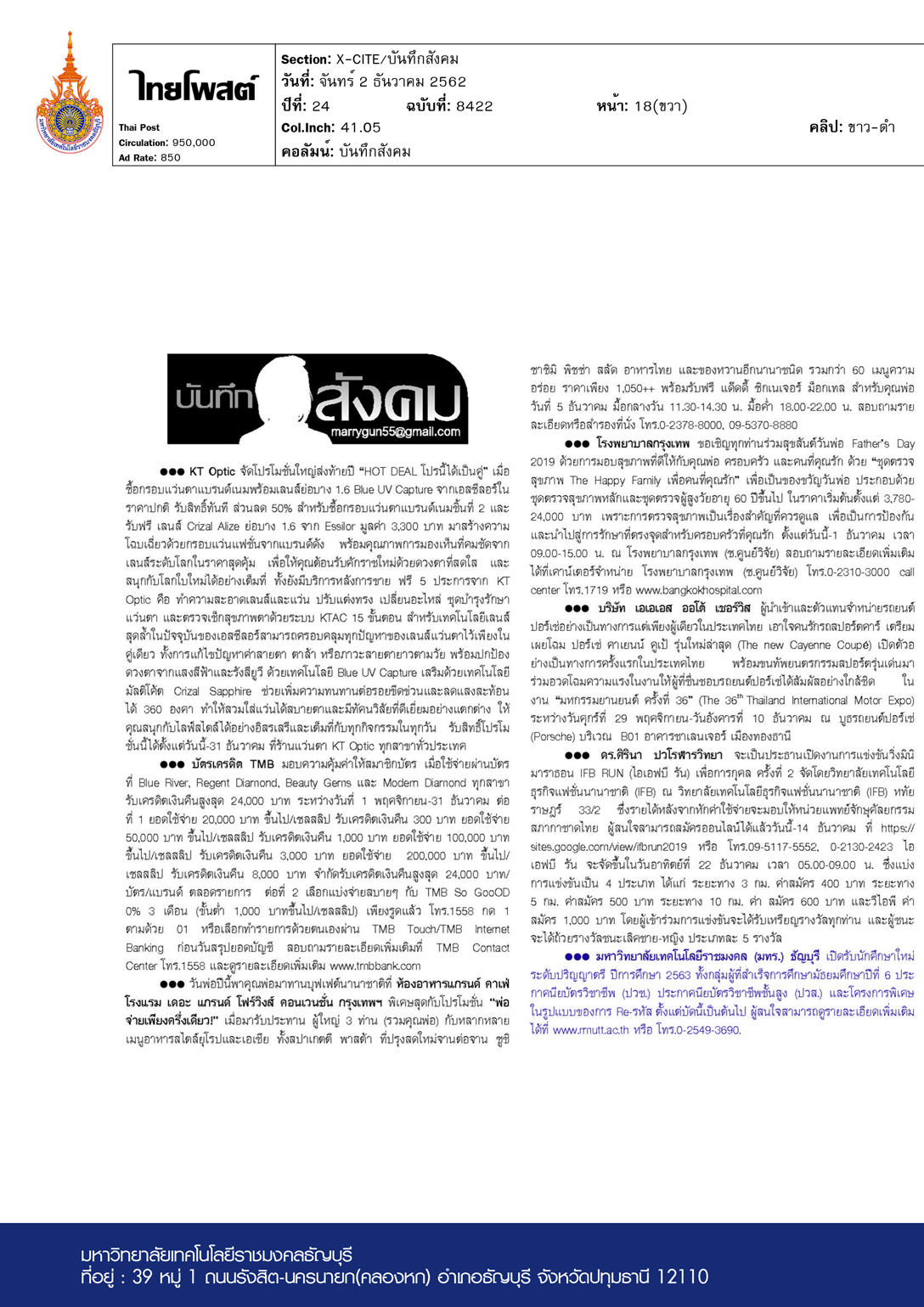 ไทยรัฐ ฉบับวันที่ 6 ธันวาคม พ.ศ. 2562 นักวิจัย มทร.ธัญบ […]