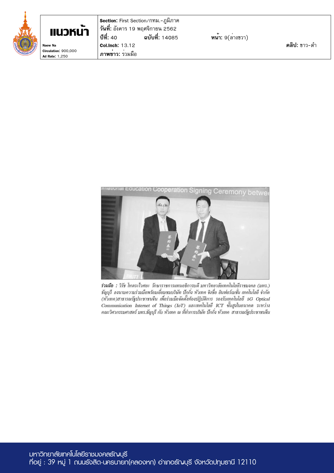 แนวหน้า ฉบับวันที่ 19 พฤศจิกายน พ.ศ. 2562 วิรัช โหตระไว […]