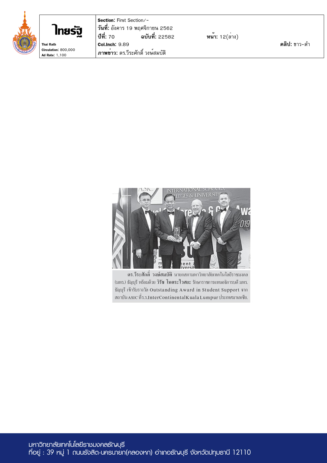 ไทยรัฐ ฉบับวันที่ 19 พฤศจิกายน พ.ศ. 2562 ดร.วีระศักดิ์ […]