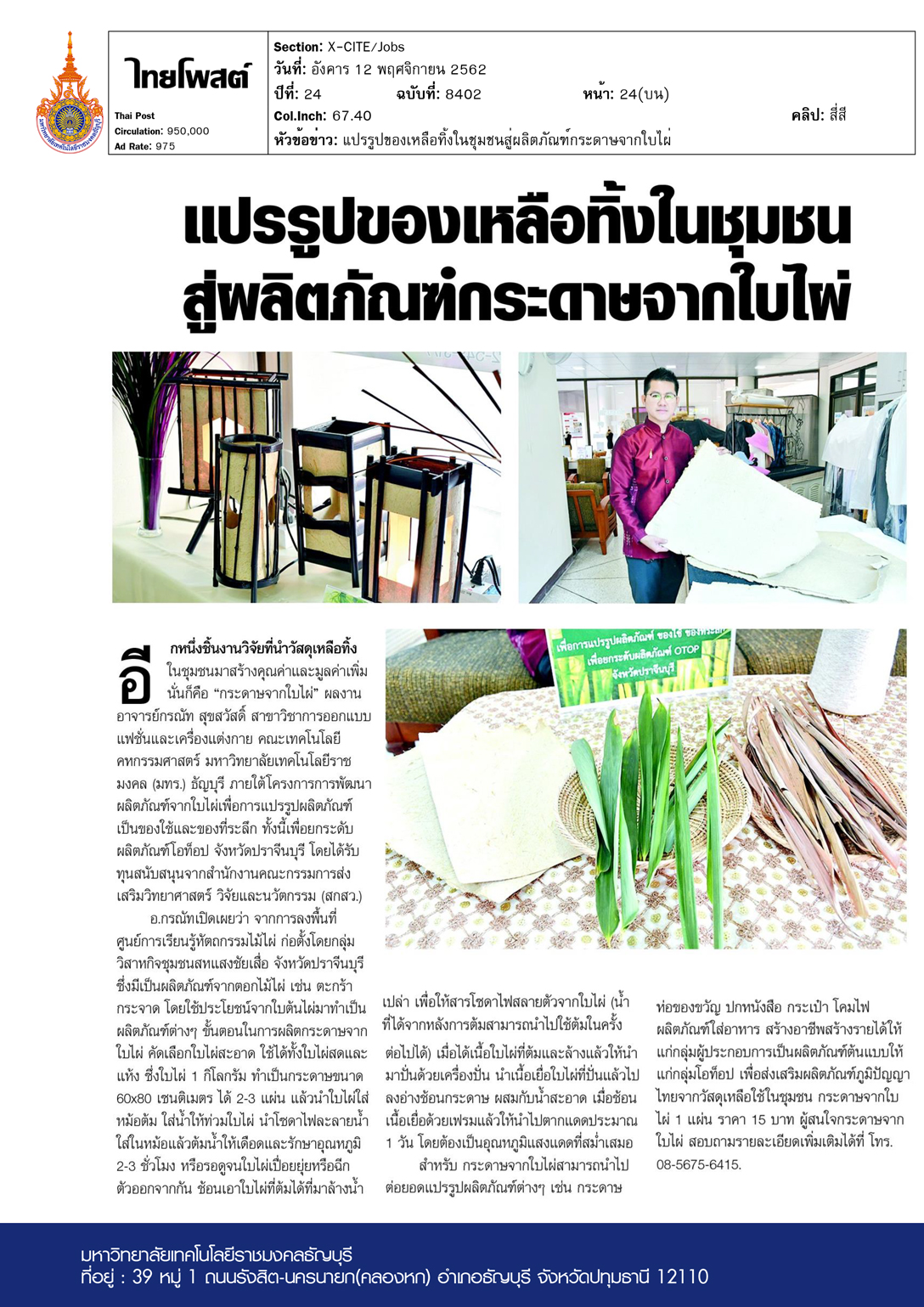 ไทยโพสต์ ฉบับวันที่ 12 พฤศจิกายน พ.ศ. 2562 อีกหนึ่งชิ้น […]