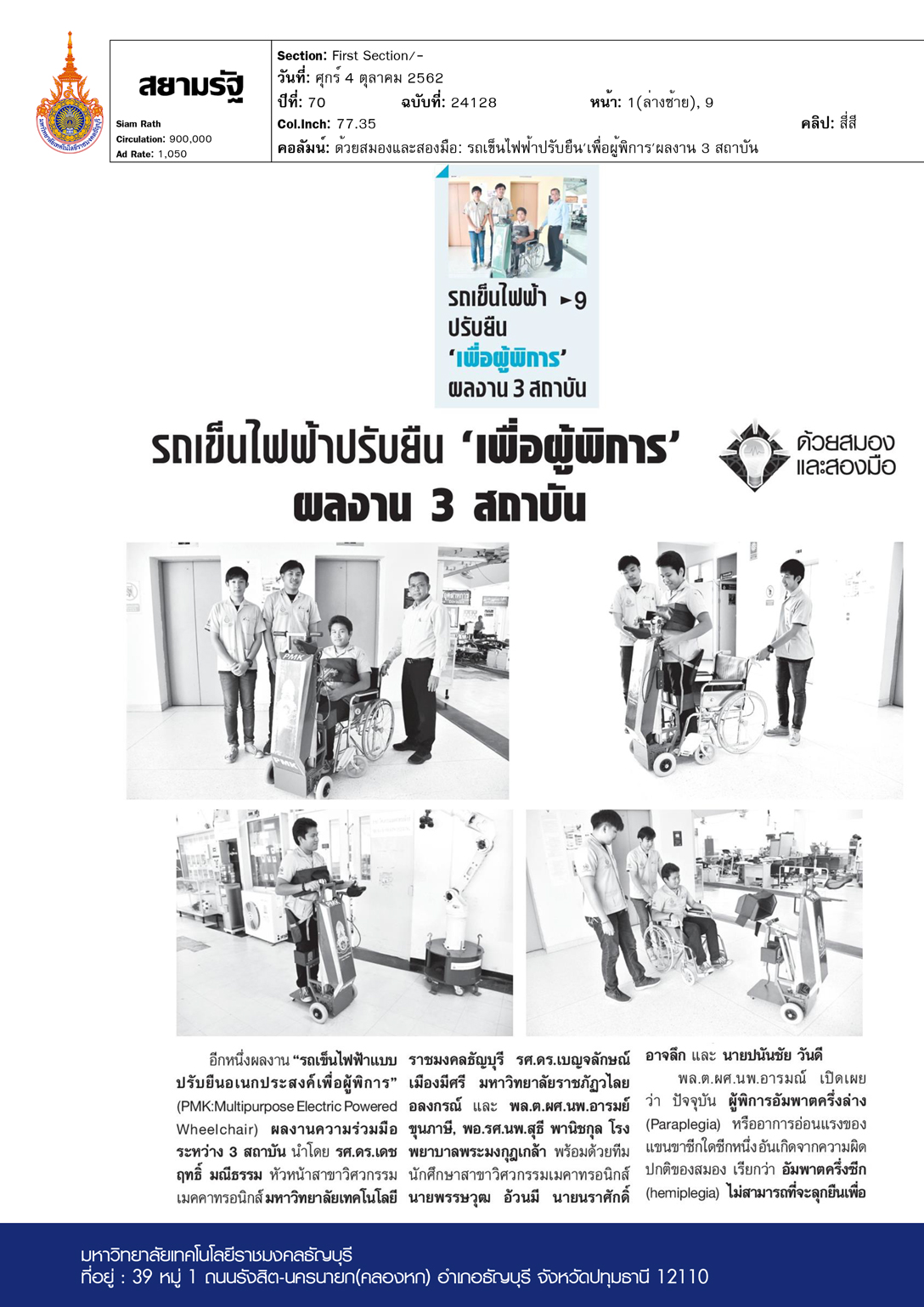 คอลัมน์ ด้วยสมองและสองมือ: รถเข็นไฟฟ้าปรับยืน’เพื่อผู้พิการ’ผลงาน 3 สถาบัน