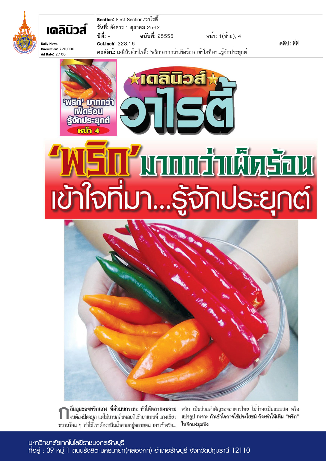 คอลัมน์ เดลินิวส์วาไรตี้: ‘พริก’มากกว่าเผ็ดร้อน เข้าใจที่มา…รู้จักประยุกต์