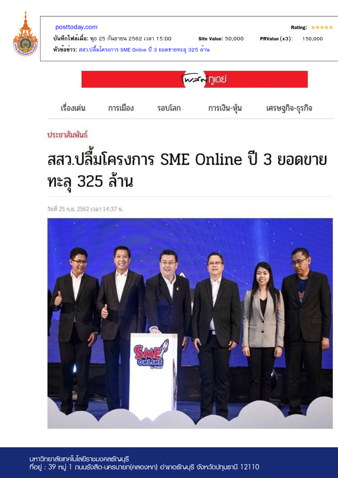 สสว.ปลื้มโครงการ SME Online ปี 3 ยอดขายทะลุ 325 ล้าน