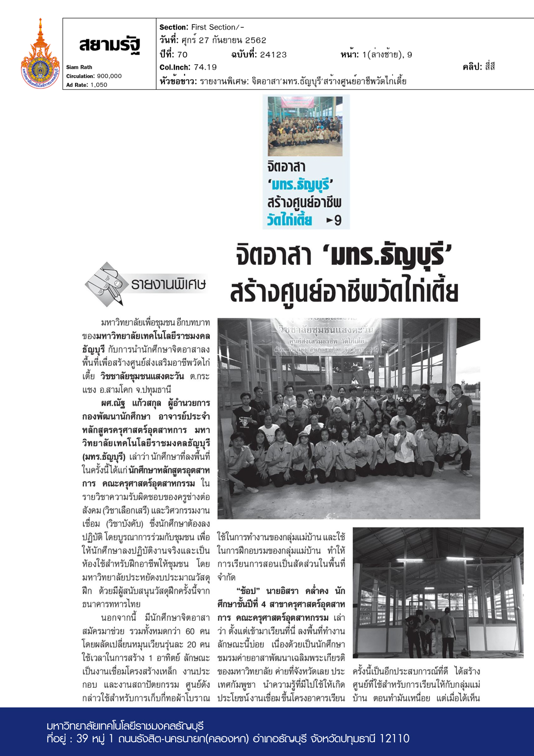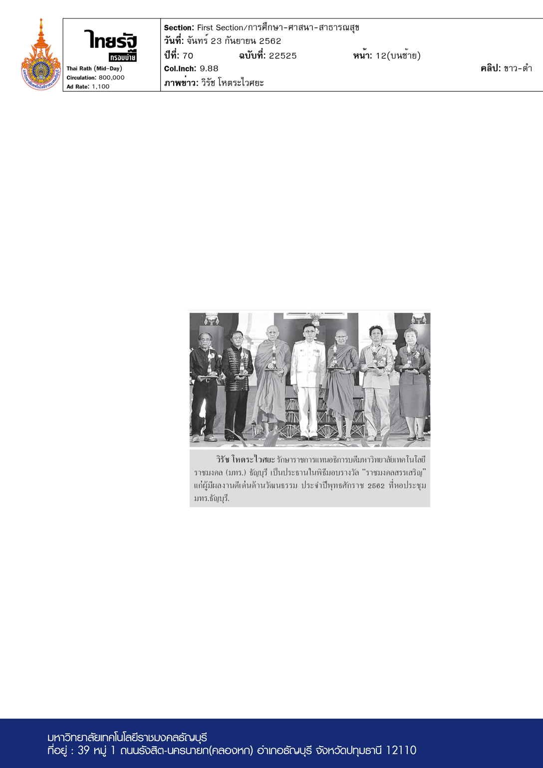 ไทยรัฐ (กรอบบ่าย) ฉบับวันที่ 24 กันยายน พ.ศ. 2562 มทร.ธ […]