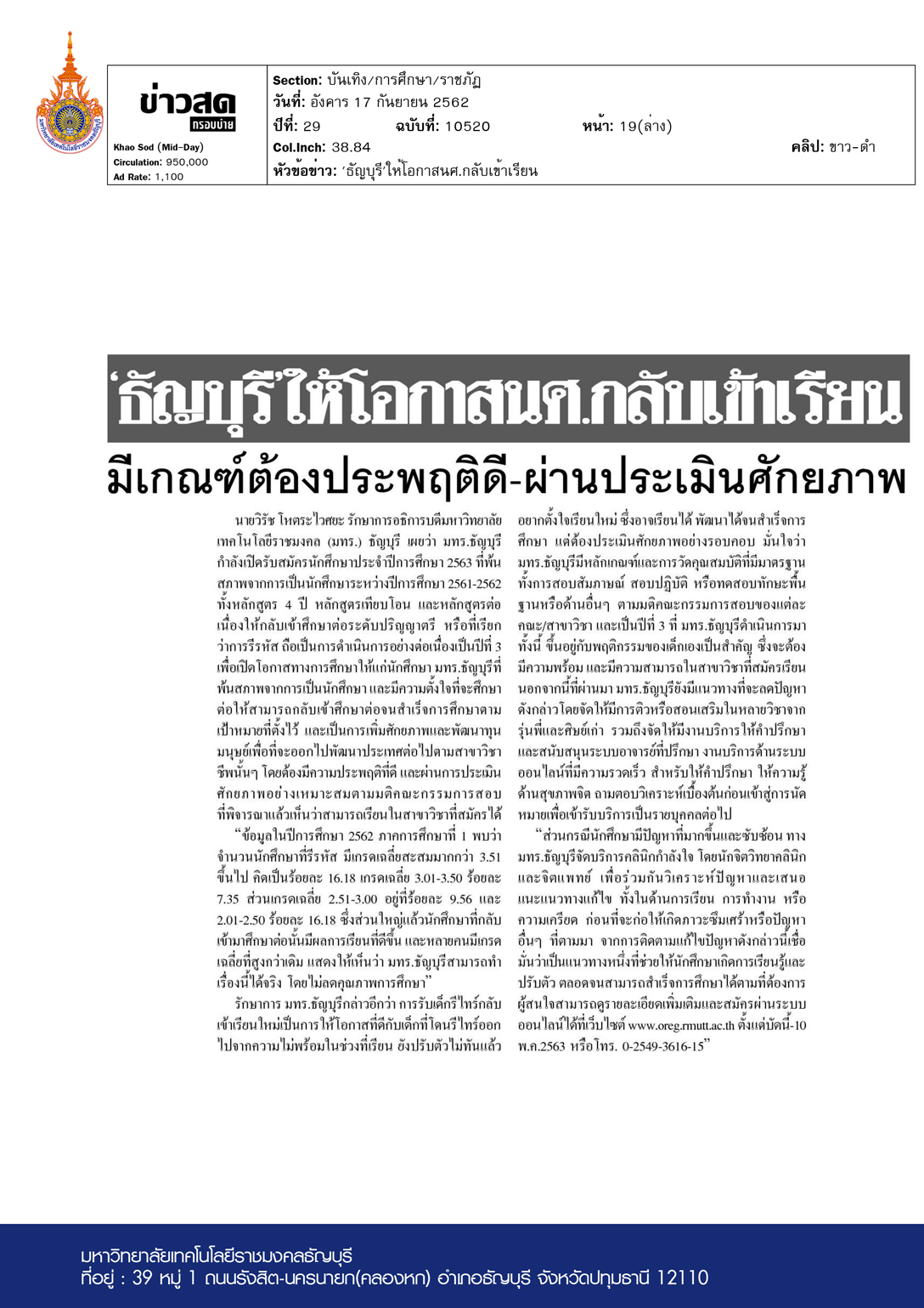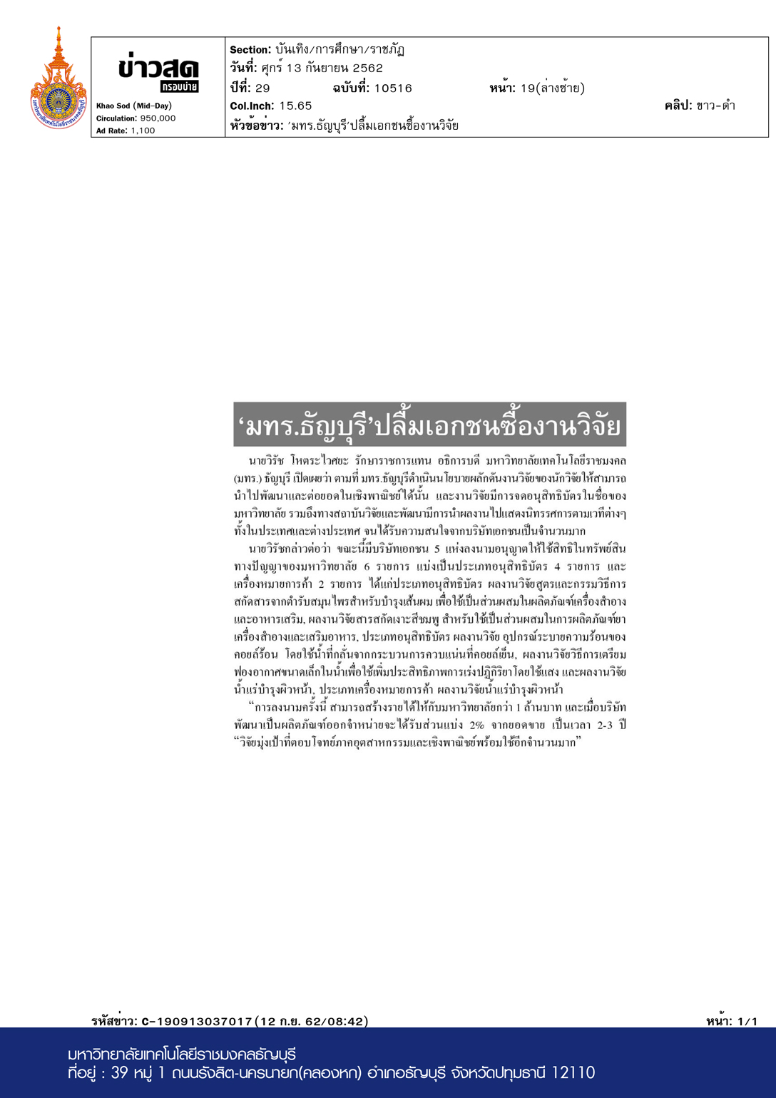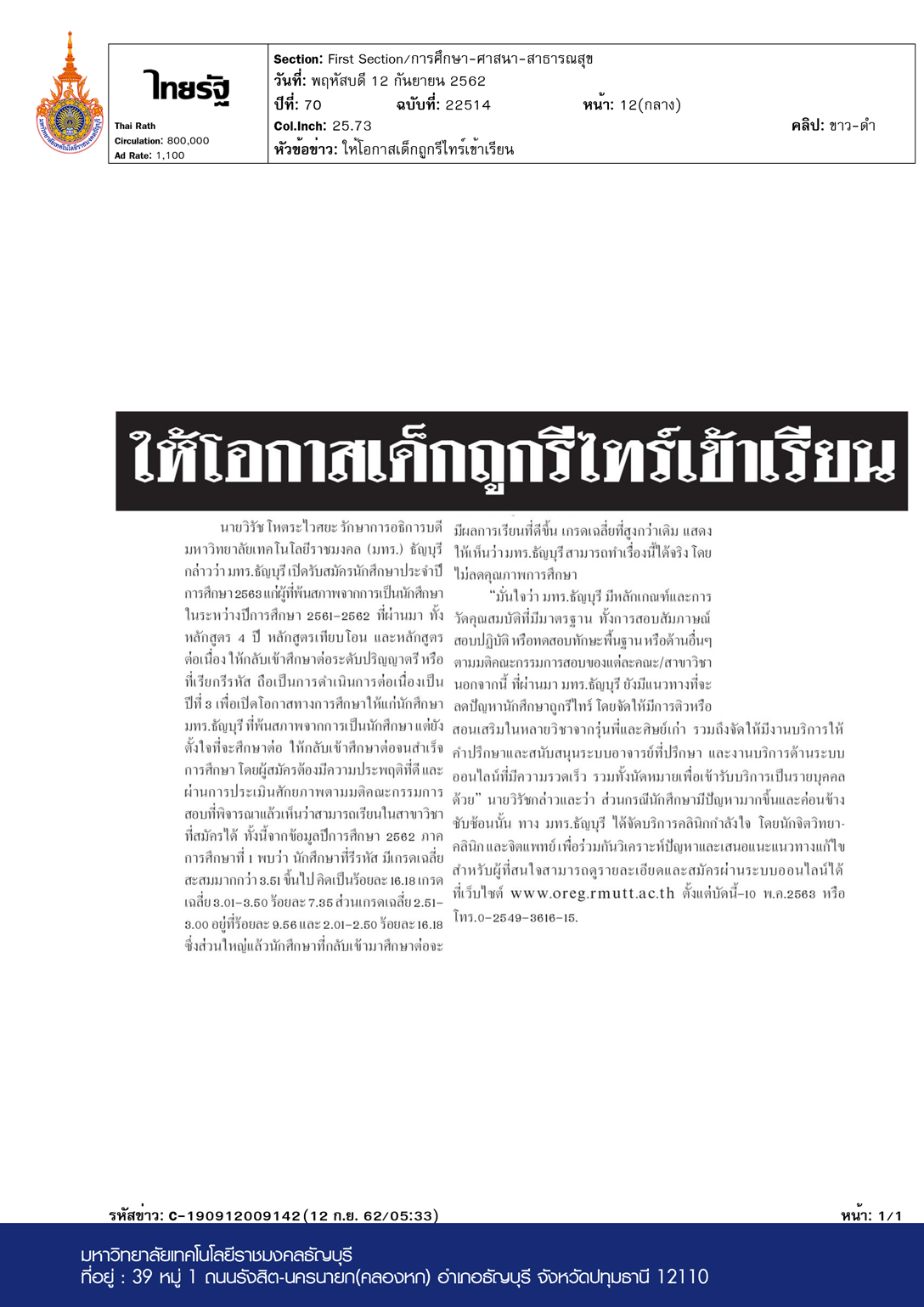 ไทยรัฐ ฉบับวันที่ 12 กันยายน พ.ศ. 2562 นายวิรัช โหตระไว […]