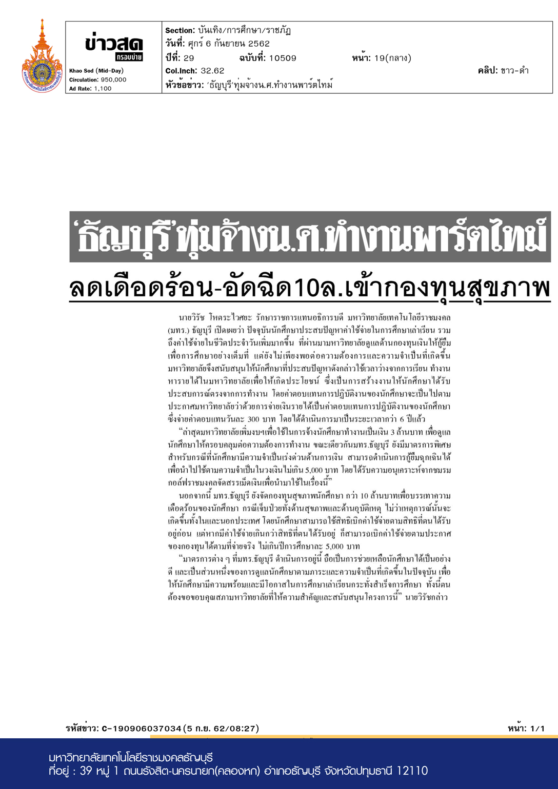 มทร.ธัญบุรีดูแลนักศึกษาระหว่างเรียนตั้งกองทุนระดมหางบฯช่วยเหลือเต็มที่