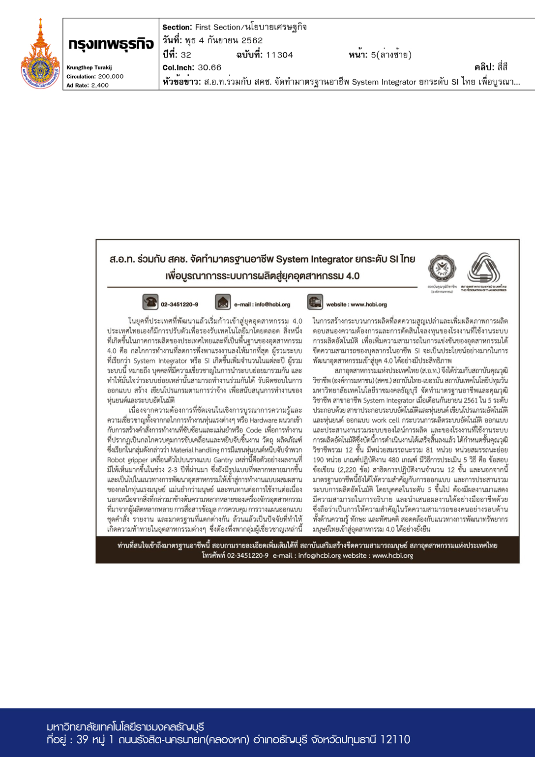 ส.อ.ท.ร่วมกับ สคช. จัดทำมาตรฐานอาชีพ System Integrator ยกระดับ SI ไทย เพื่อบูรณาการระบบการผลิตยุคอุตสาหกรรม 4.0