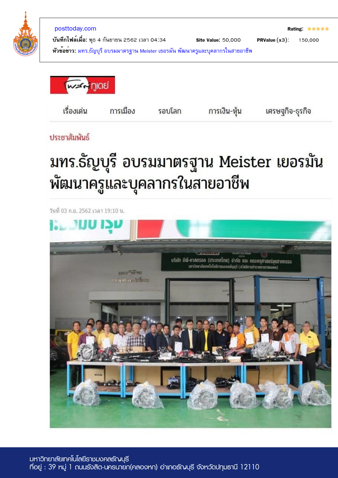 มทร.ธัญบุรี อบรมมาตรฐาน Meister เยอรมัน พัฒนาครูและบุคลากรในสายอาชีพ