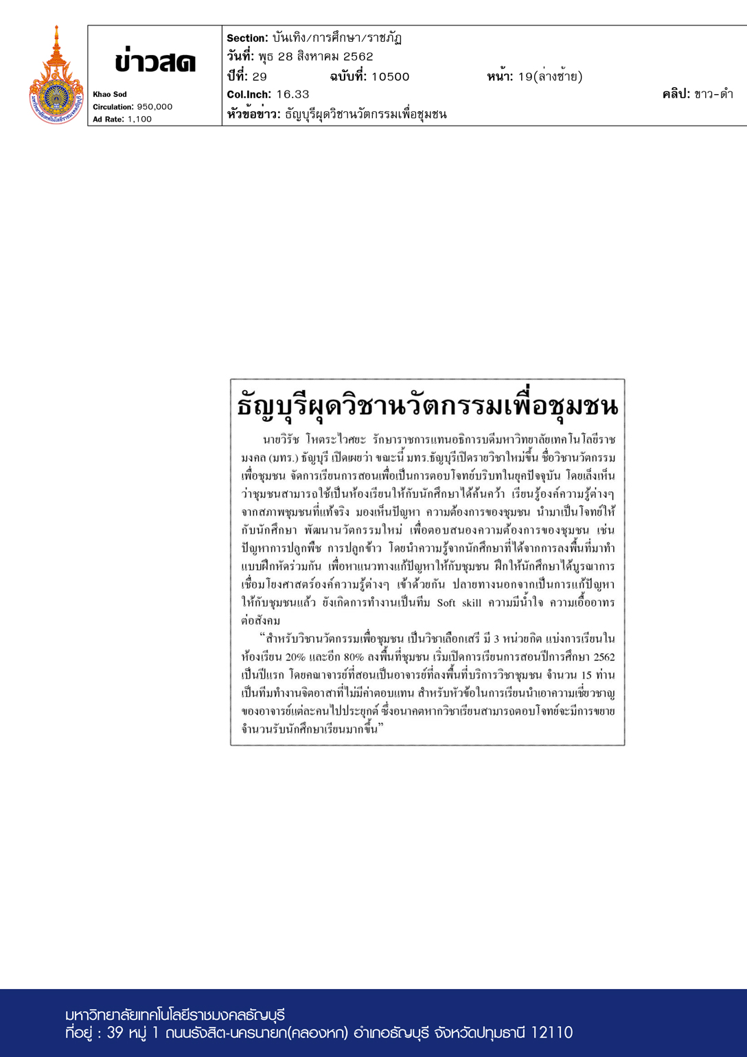 posttoday.com ฉบับวันที่ 27 สิงหาคม พ.ศ. 2562 มหาวิทยาล […]