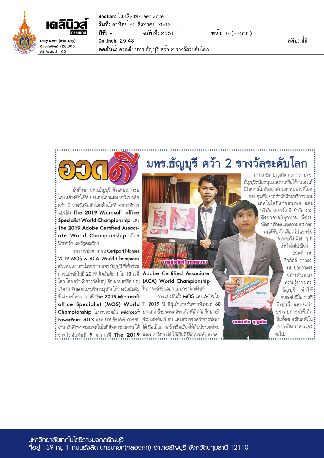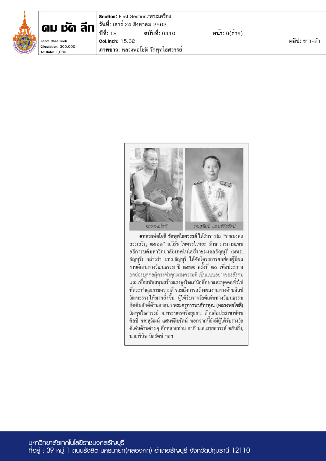 คอลัมน์ อวดดี: มทร.ธัญบุรี คว้า 2 รางวัลระดับโลก