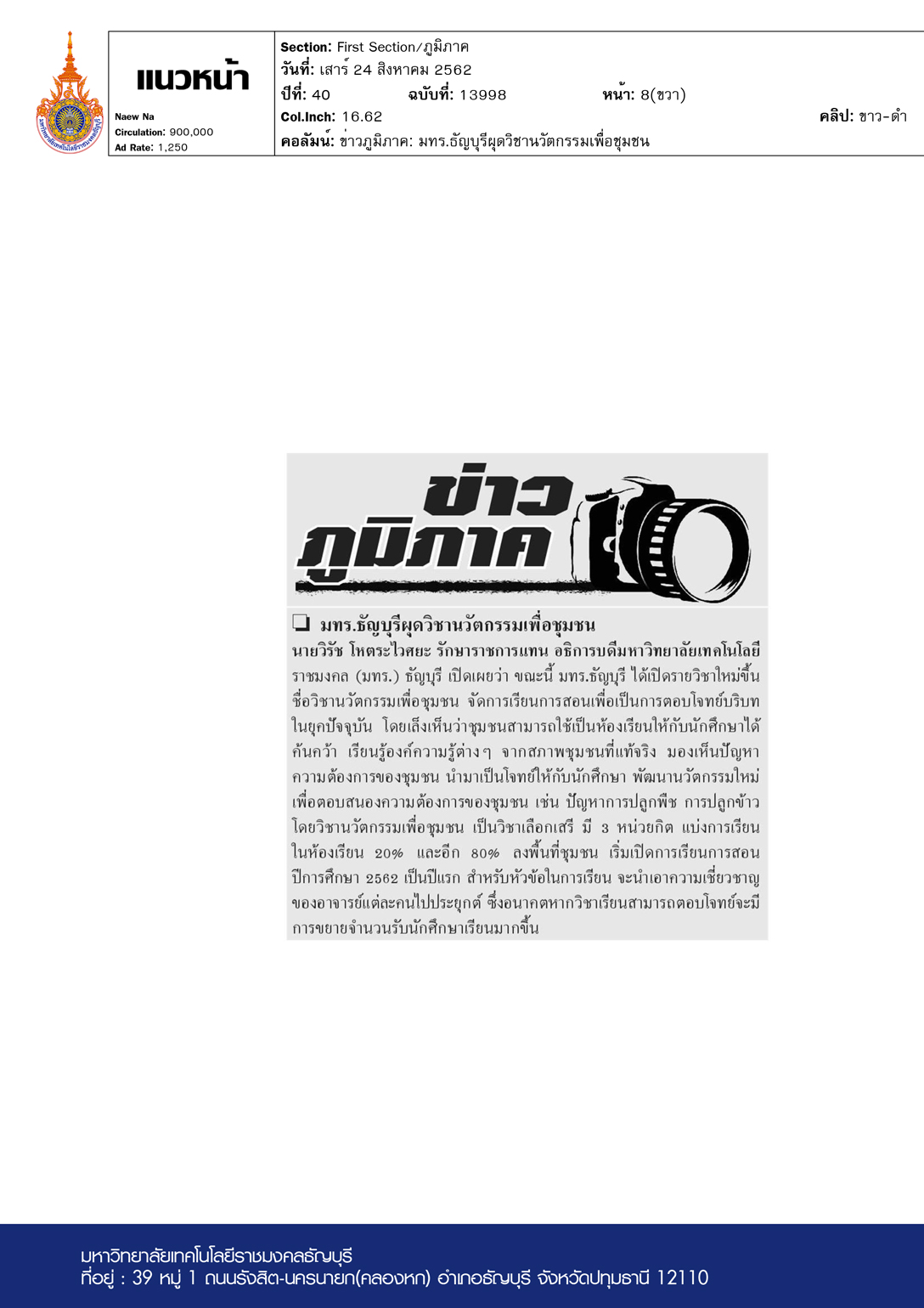 คอลัมน์ ข่าวภูมิภาค: มทร.ธัญบุรีผุดวิชานวัตกรรมเพื่อชุมชน