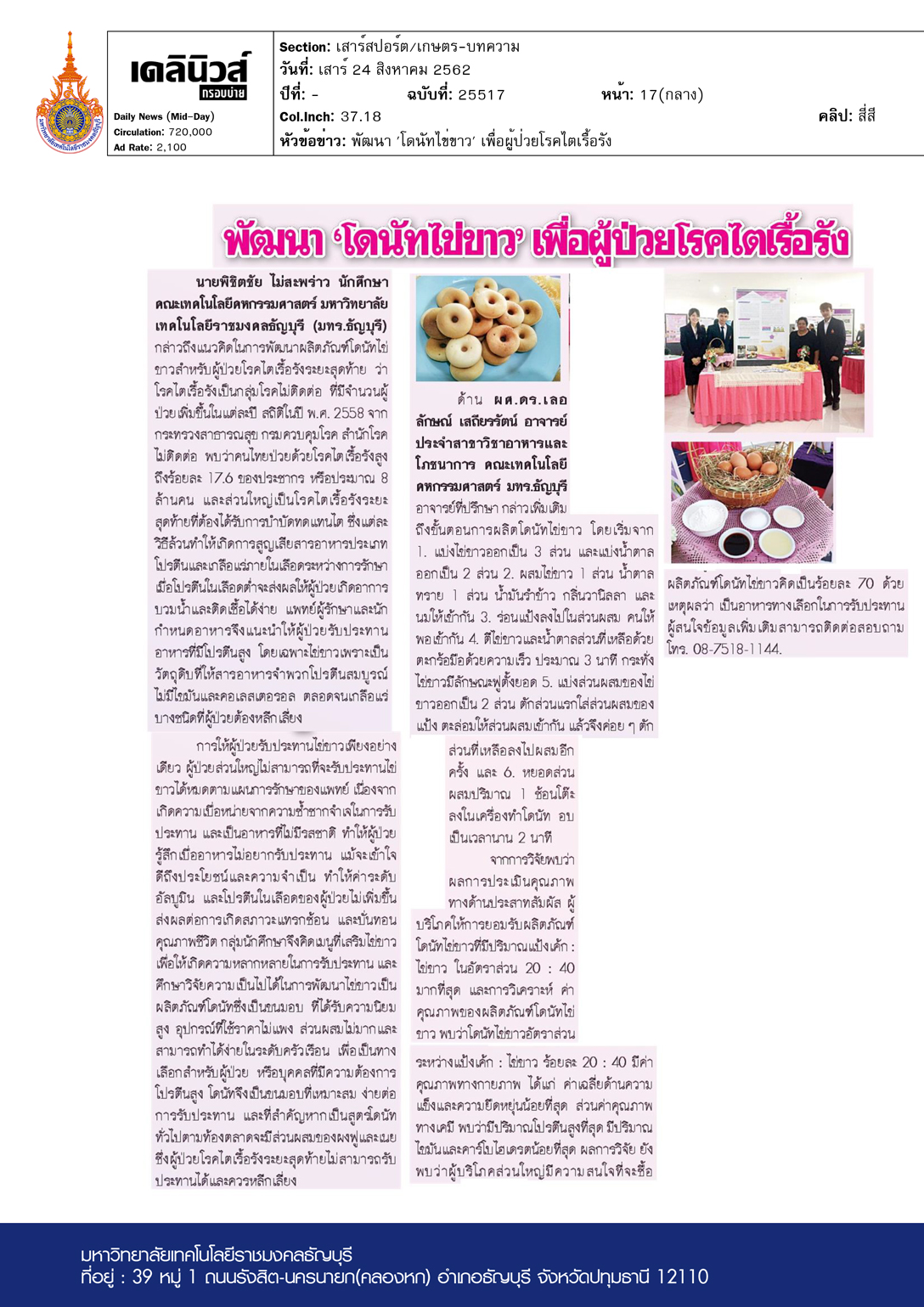 พัฒนา ‘โดนัทไข่ขาว’ เพื่อผู้ป่วยโรคไตเรื้อรัง
