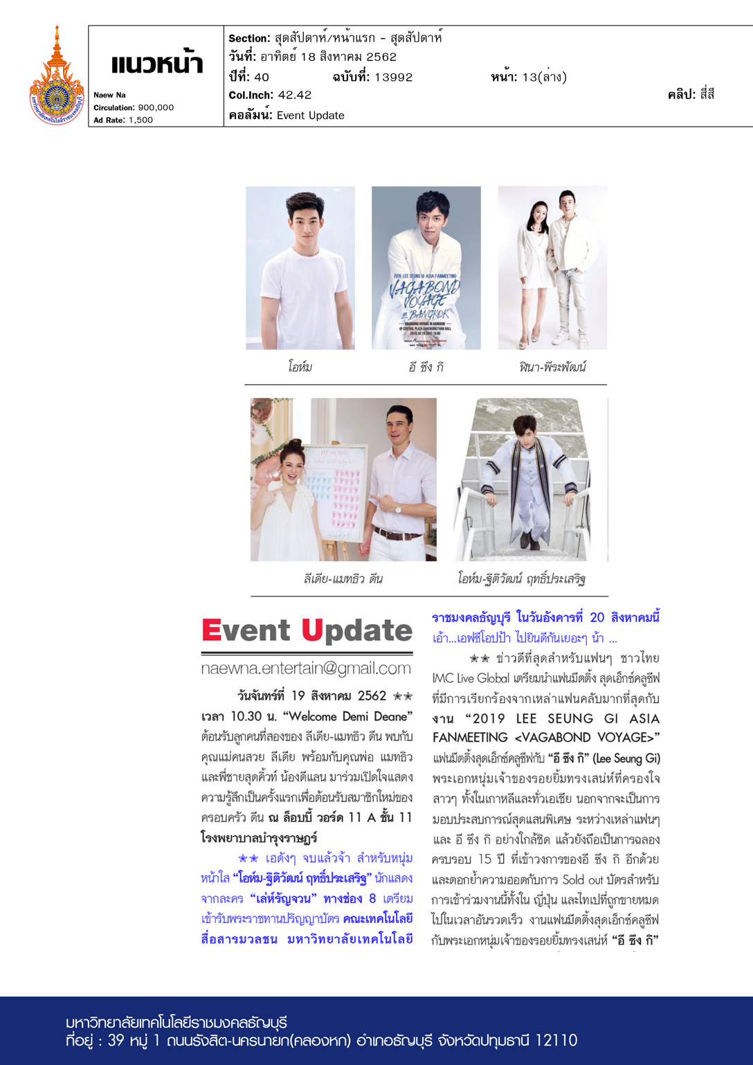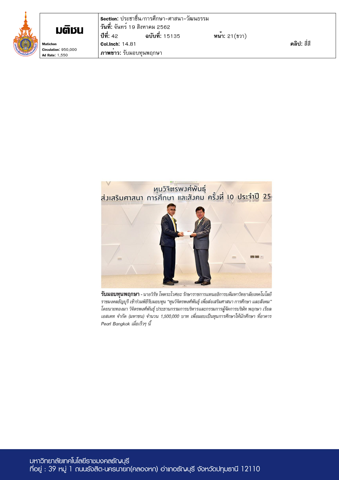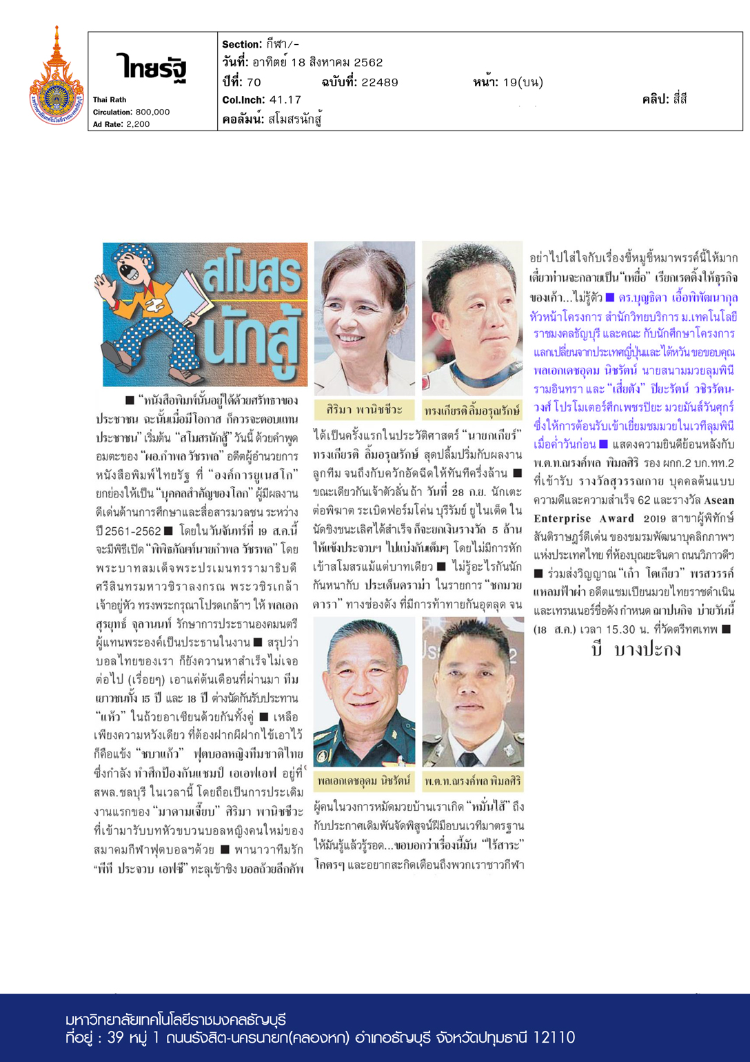ไทยโพสต์ ฉบับวันที่ 19 สิงหาคม พ.ศ. 2562 คณาจารย์ นักศึ […]