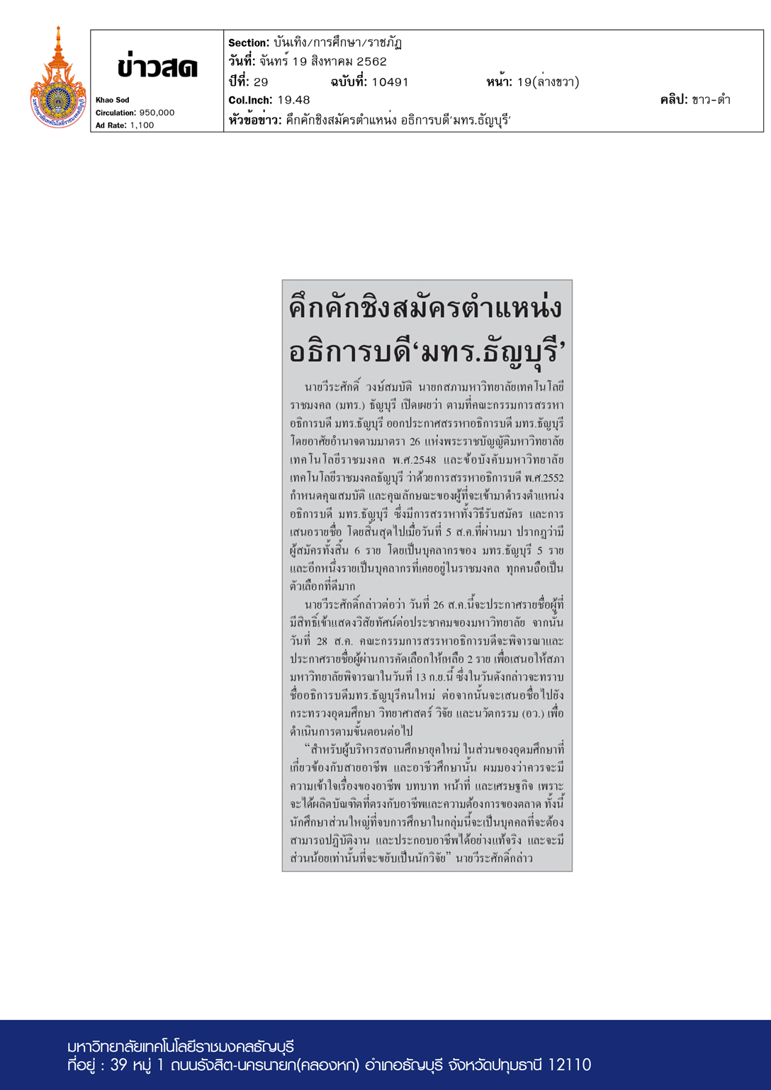 คึกคักชิงสมัครตำแหน่ง อธิการบดี’มทร.ธัญบุรี’
