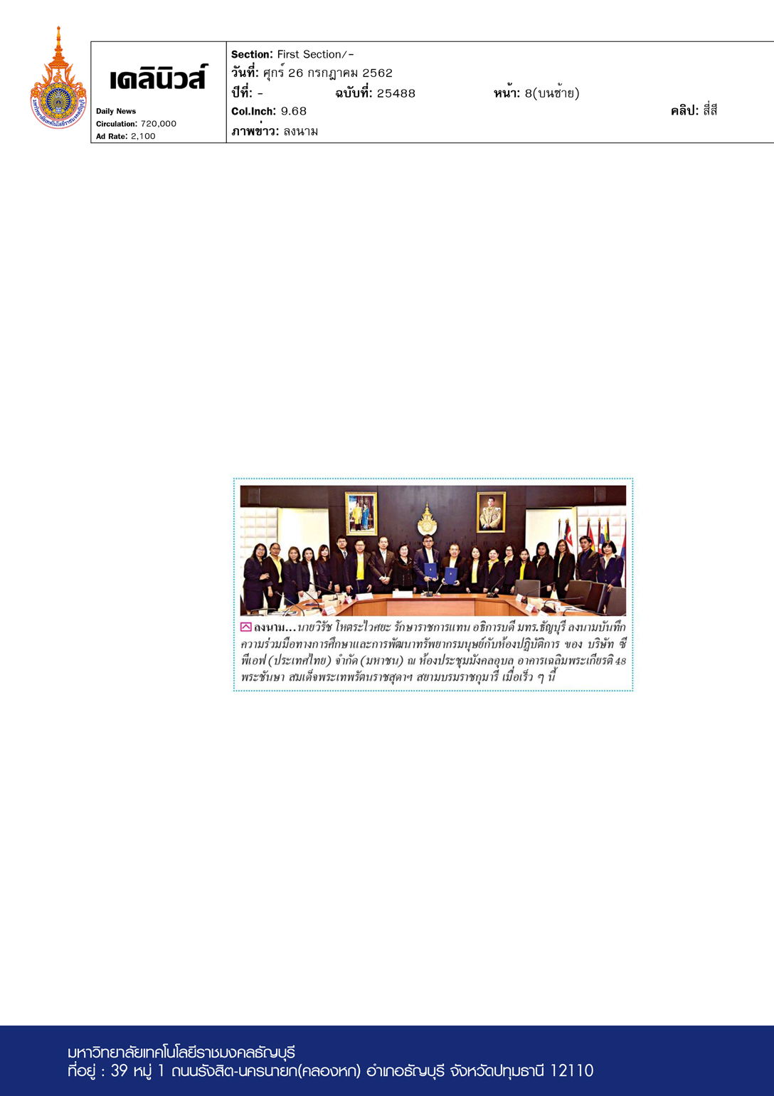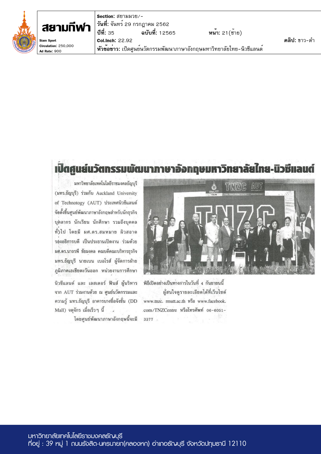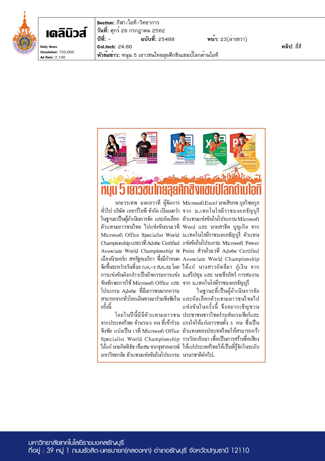 สยามกีฬา ฉบับวันที่ 29 กรกฎาคม พ.ศ. 2562 มหาวิทยาลัยเทค […]