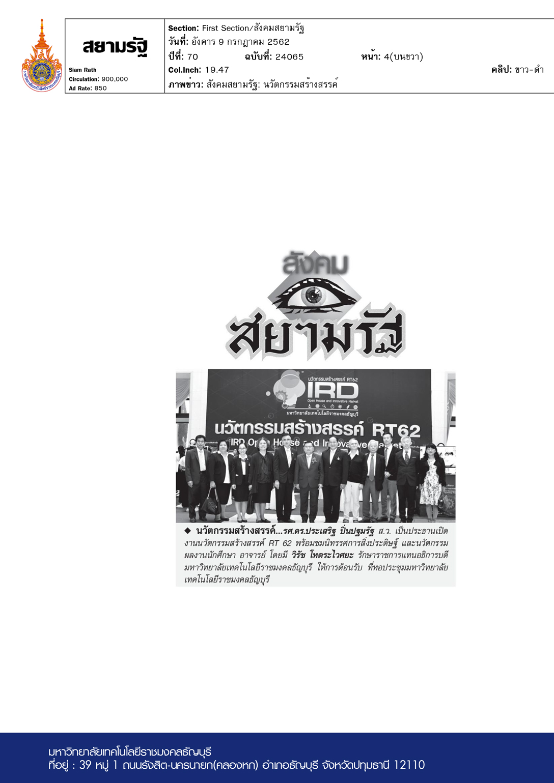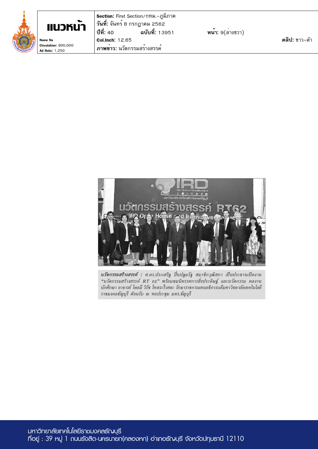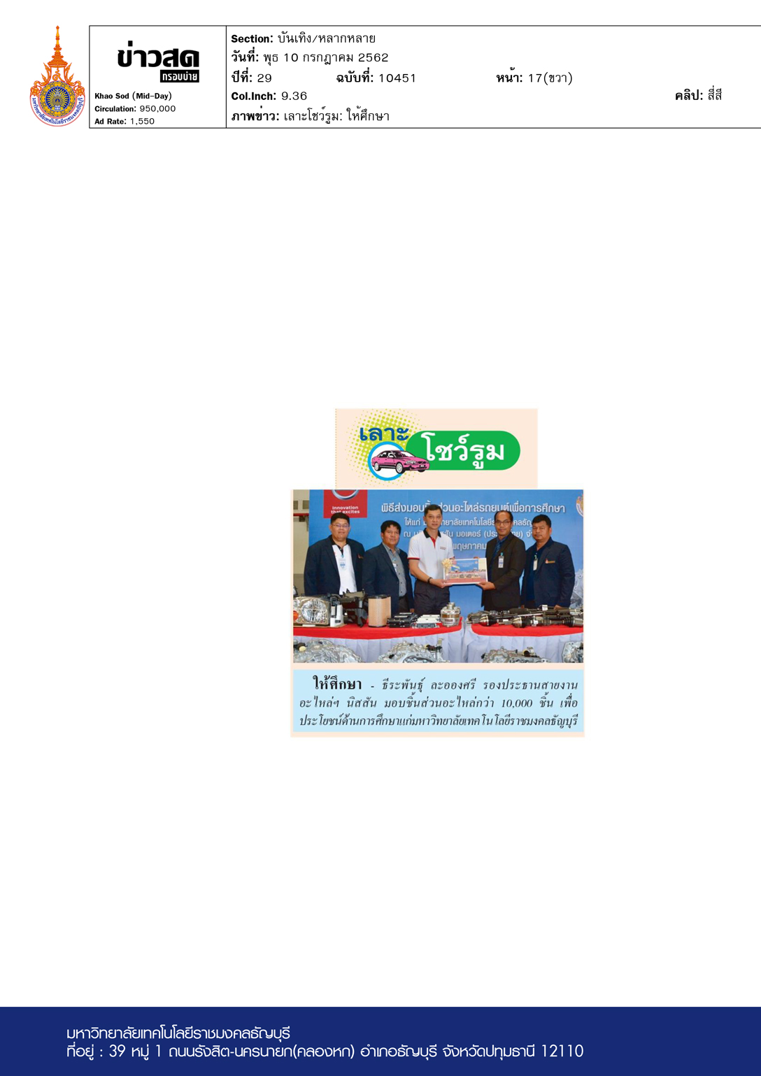 แนวหน้า ฉบับวันที่ 10 กรกฎาคม พ.ศ. 2562 มหาวิทยาลัยเทคโ […]