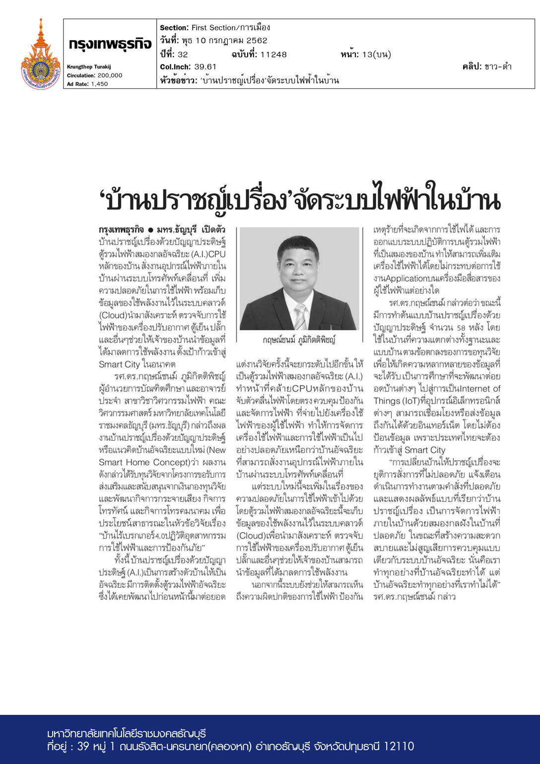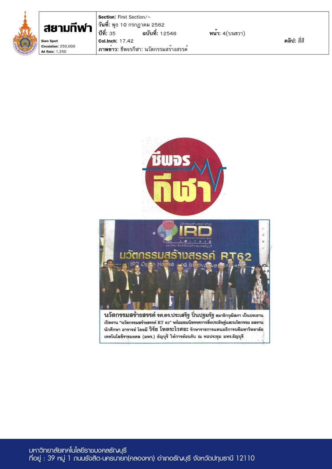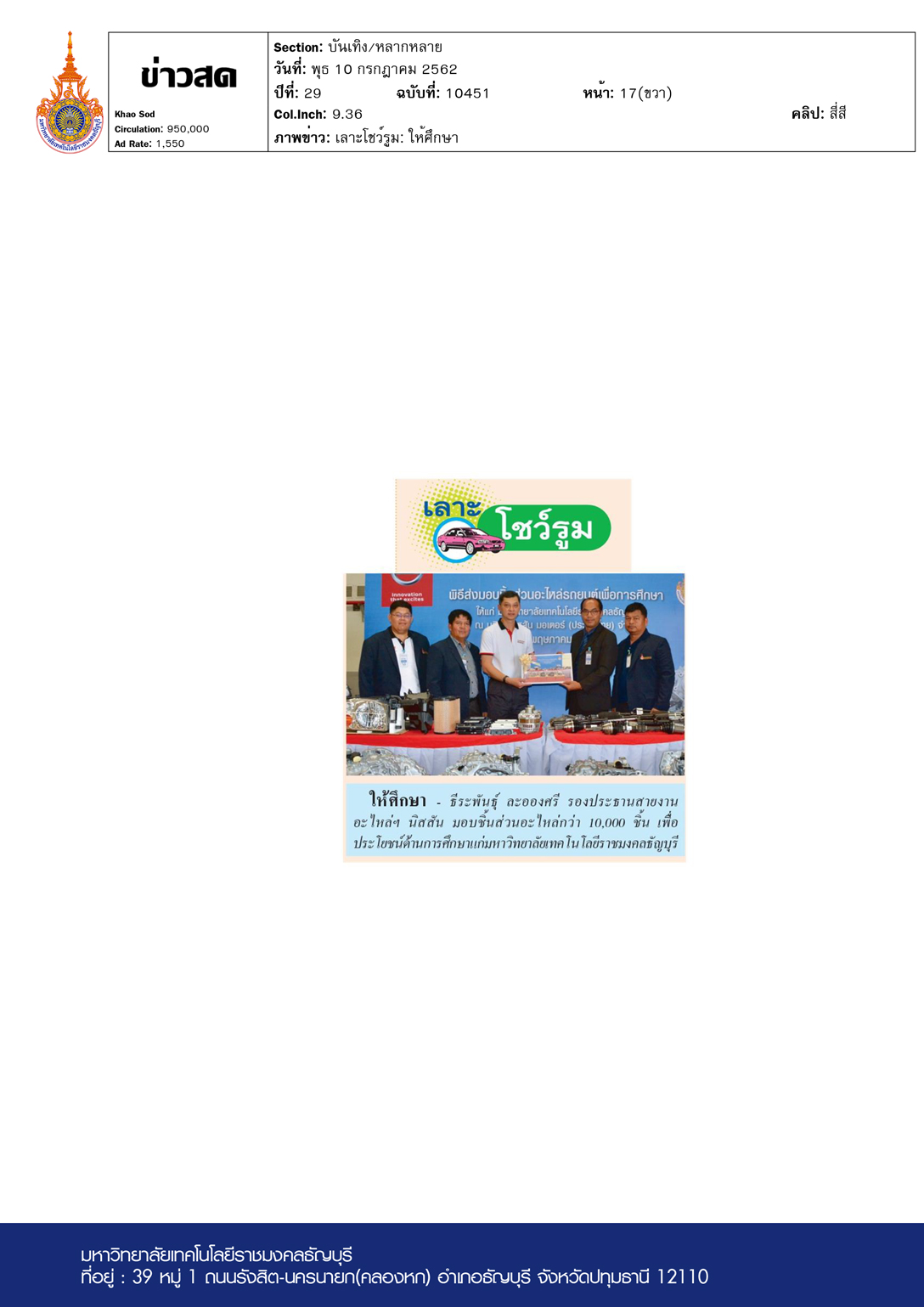 แนวหน้า ฉบับวันที่ 10 กรกฎาคม พ.ศ. 2562 มหาวิทยาลัยเทคโ […]