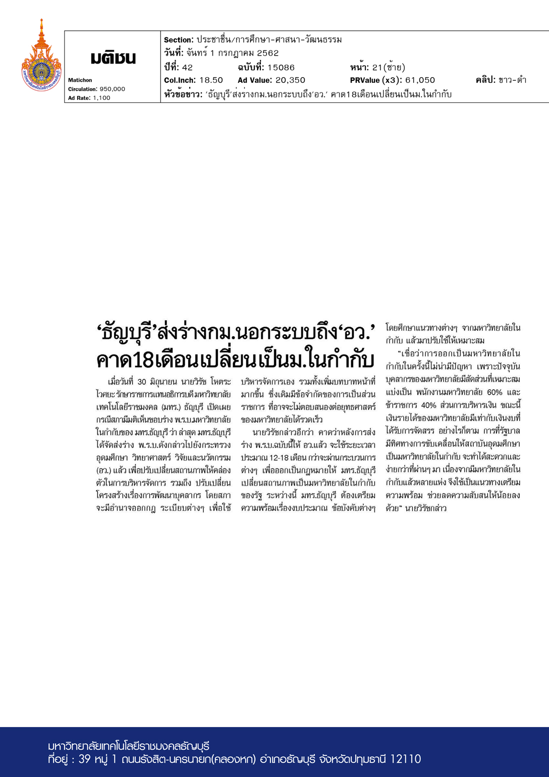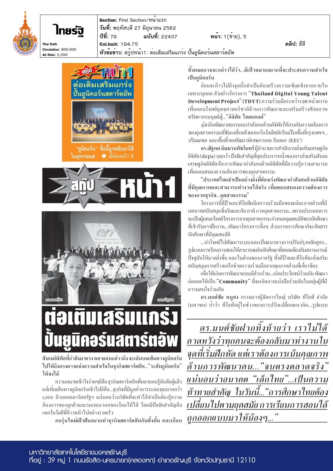ไทยรัฐ ฉบับวันที่ 27 มิถุนายน พ.ศ. 2562 “ยูนิคอร์ […]