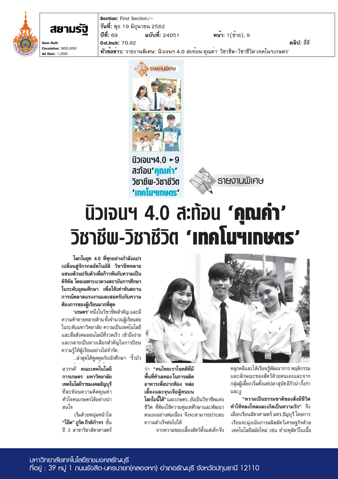 รายงานพิเศษ: นิวเจนฯ 4.0 สะท้อน’คุณค่า’ วิชาชีพ-วิชาชีวิต’เทคโนฯเกษตร’