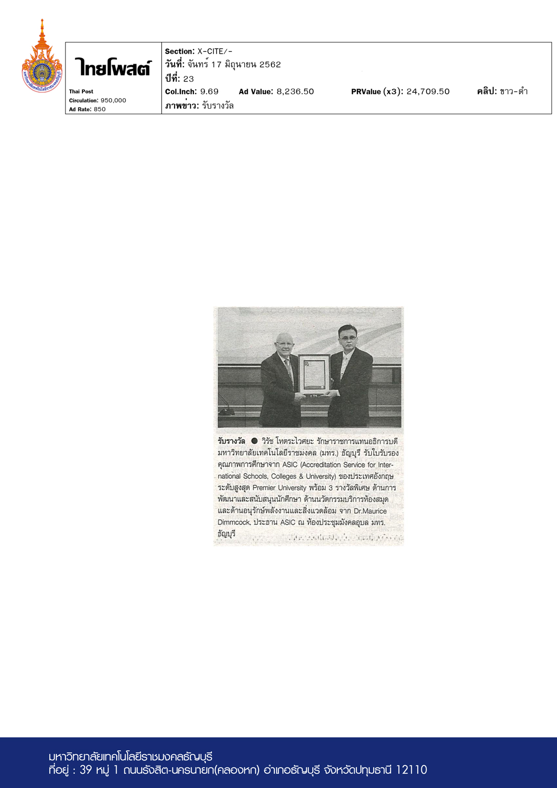 มหาวิทยาลัยเทคโนโลยีราชมงคล (มทร.) ธัญบุรี ได้รับโอกาสแ […]