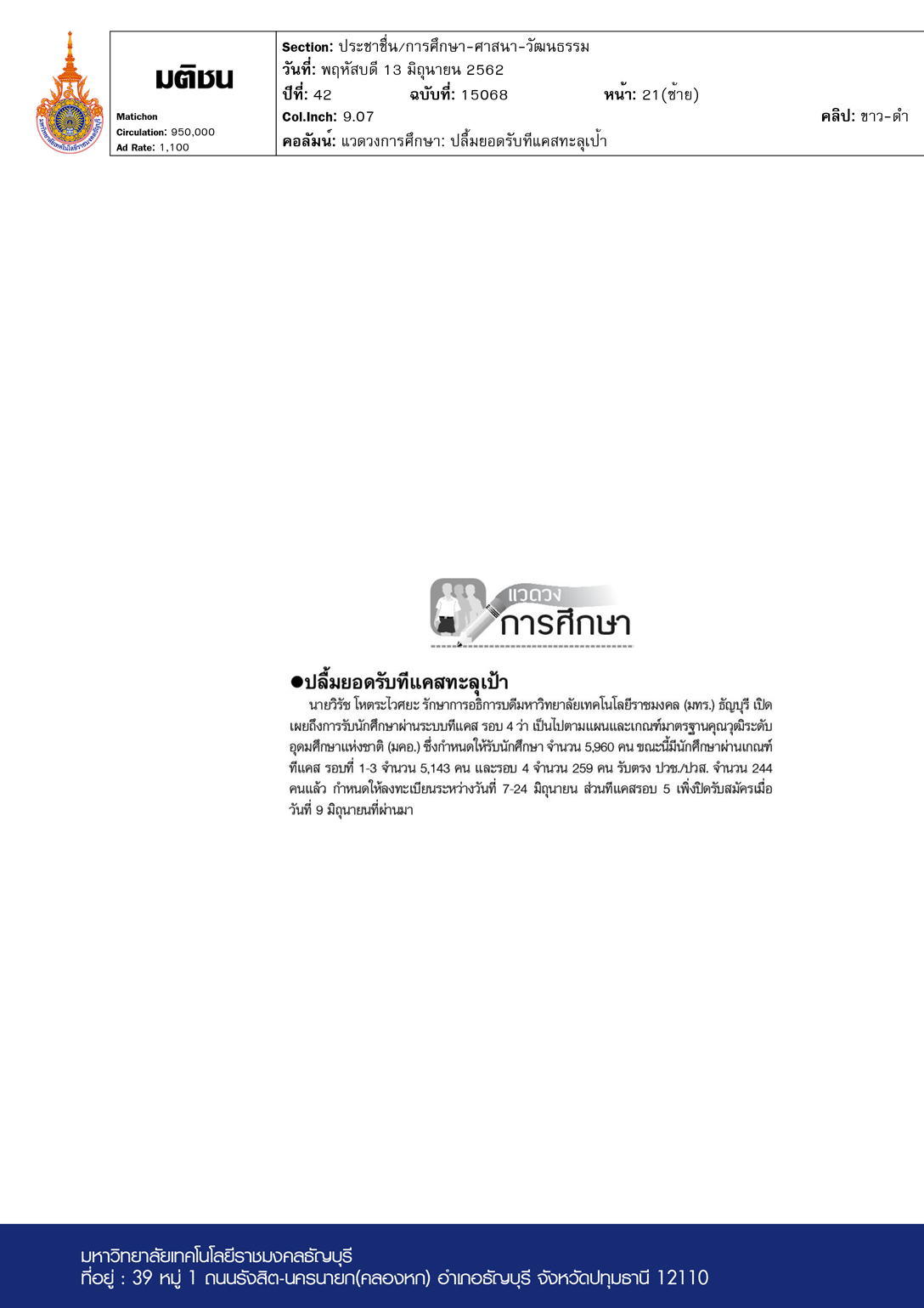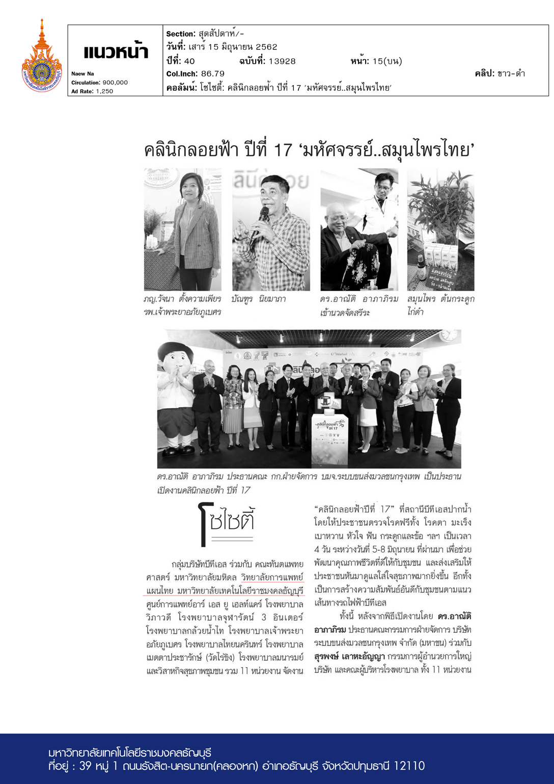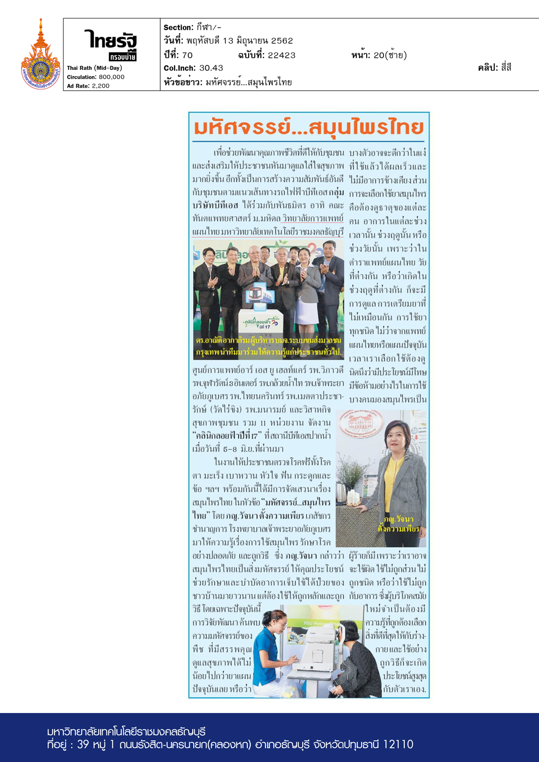 ไทยรัฐ (กรอบบ่าย) ฉบับวันที่ 15 มิถุนายน พ.ศ. 2562 ผศ.ด […]