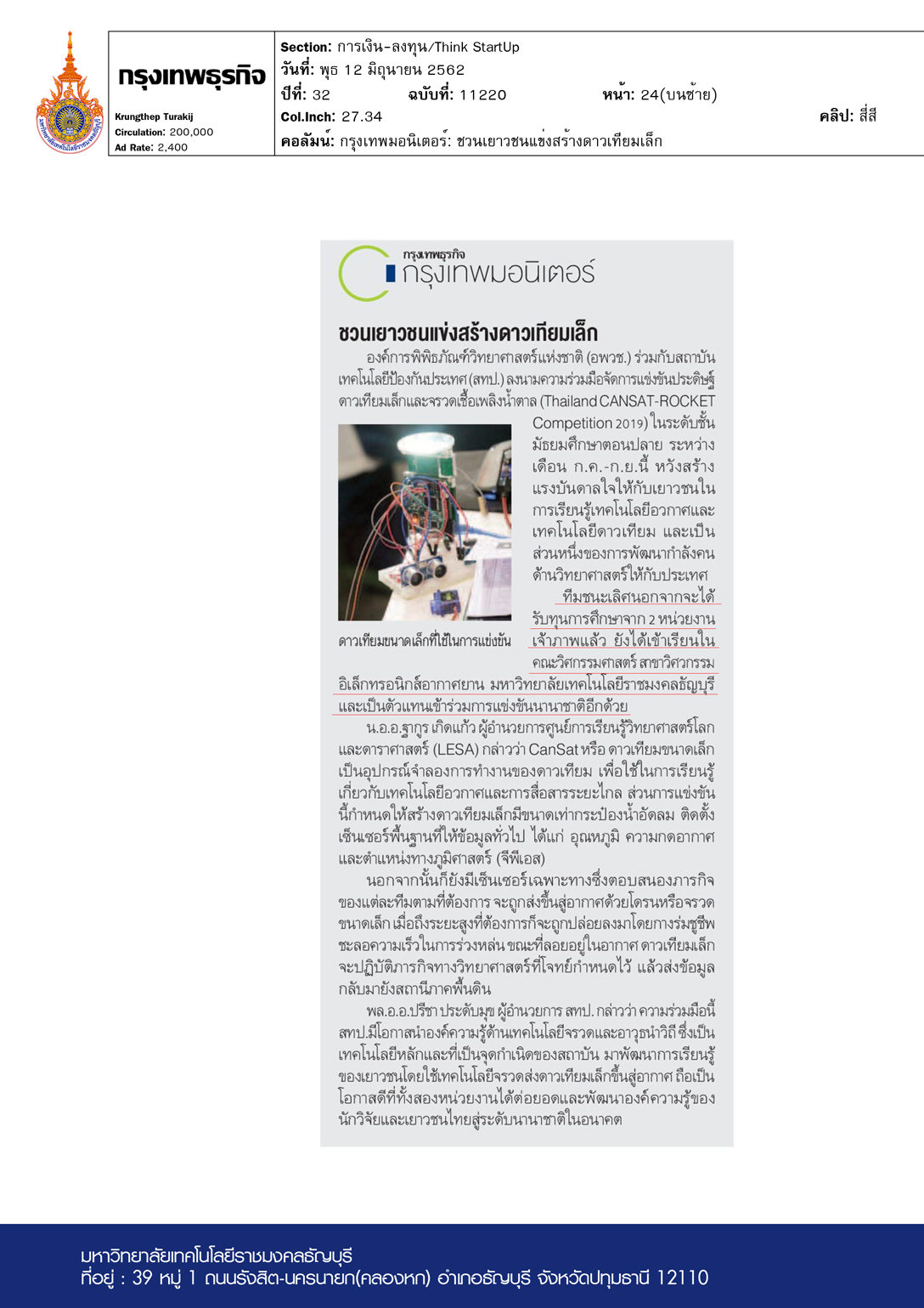 คอลัมน์ กรุงเทพมอนิเตอร์: ชวนเยาวชนแข่งสร้างดาวเทียมเล็ก