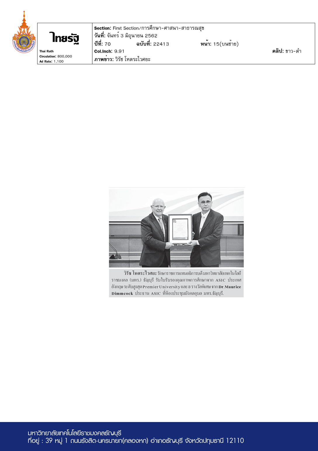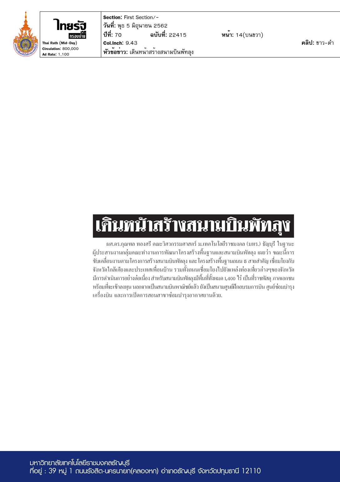ไทยโพสต์ ฉบับวันที่ 03 มิถุนายน พ.ศ. 2562 ดร.ธีรภัทร ปร […]