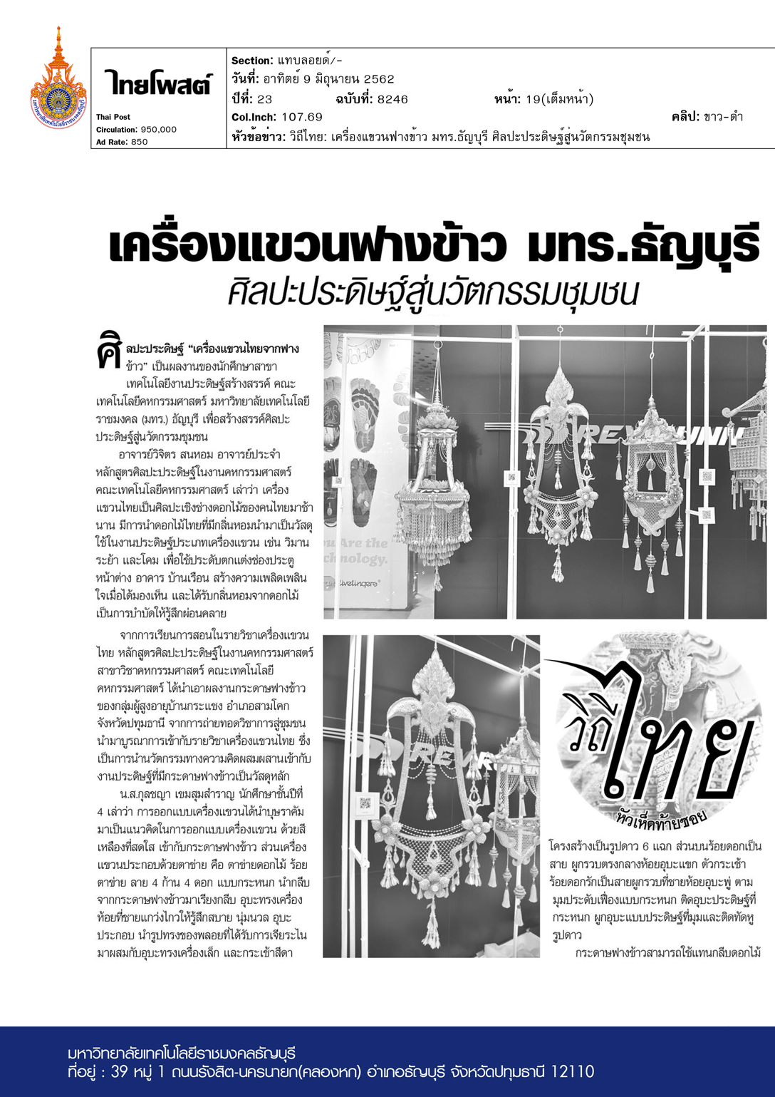วิถีไทย: เครื่องแขวนฟางข้าว มทร.ธัญบุรี ศิลปะประดิษฐ์สู่นวัตกรรมชุมชน