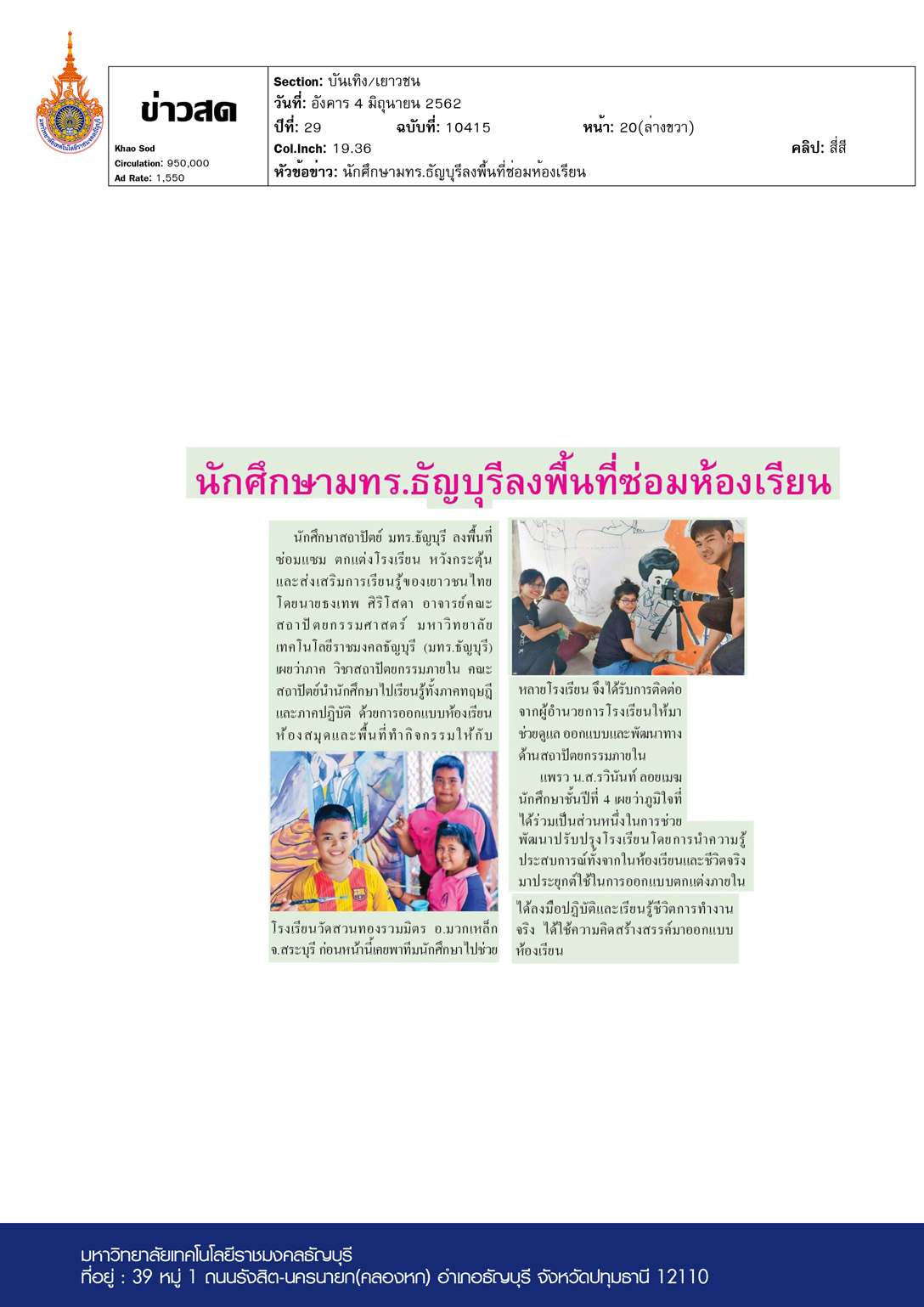 ข่าวสด ฉบับวันที่ 04 มิถุนายน พ.ศ. 2562 นักศึกษาสถาปัตย […]