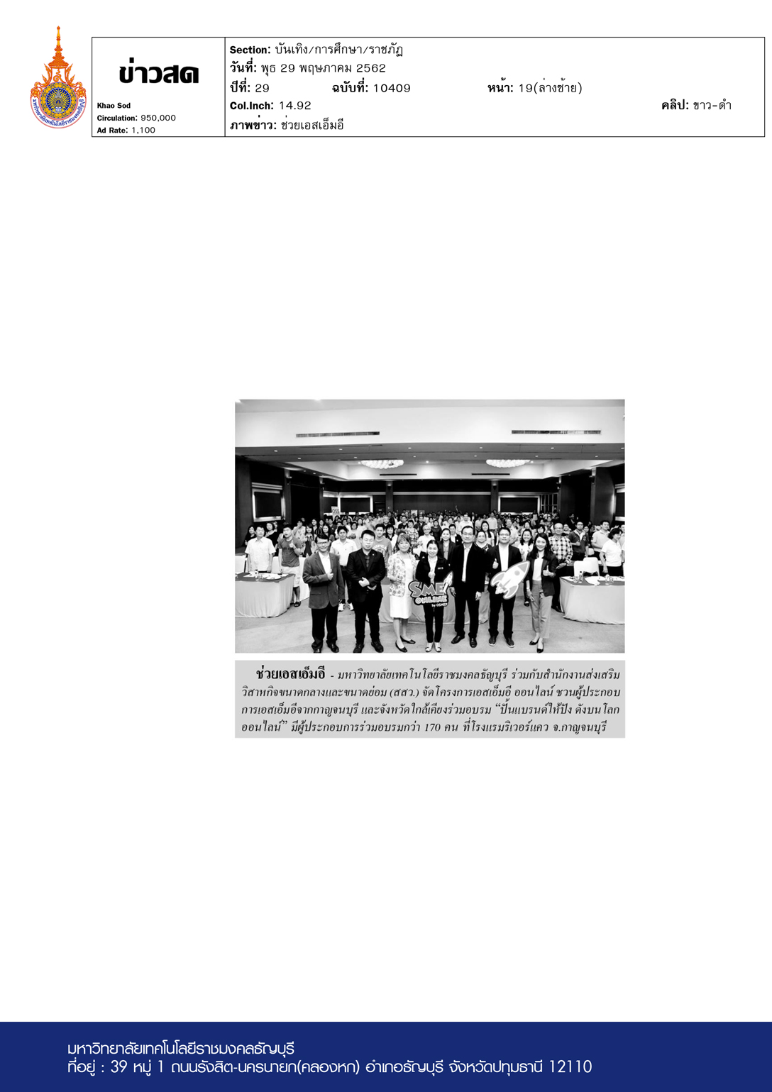 ข่าวสด ฉบับวันที่ 29 พฤษภาคม พ.ศ. 2562 มหาวิทยาลัยเทคโน […]
