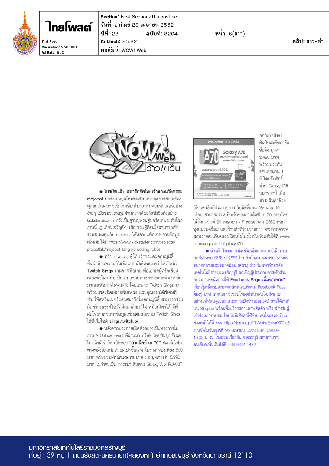 ไทยโพสต์ ฉบับวันที่ 28 เมษายน พ.ศ. 2562 * ข่าวดี โครงกา […]