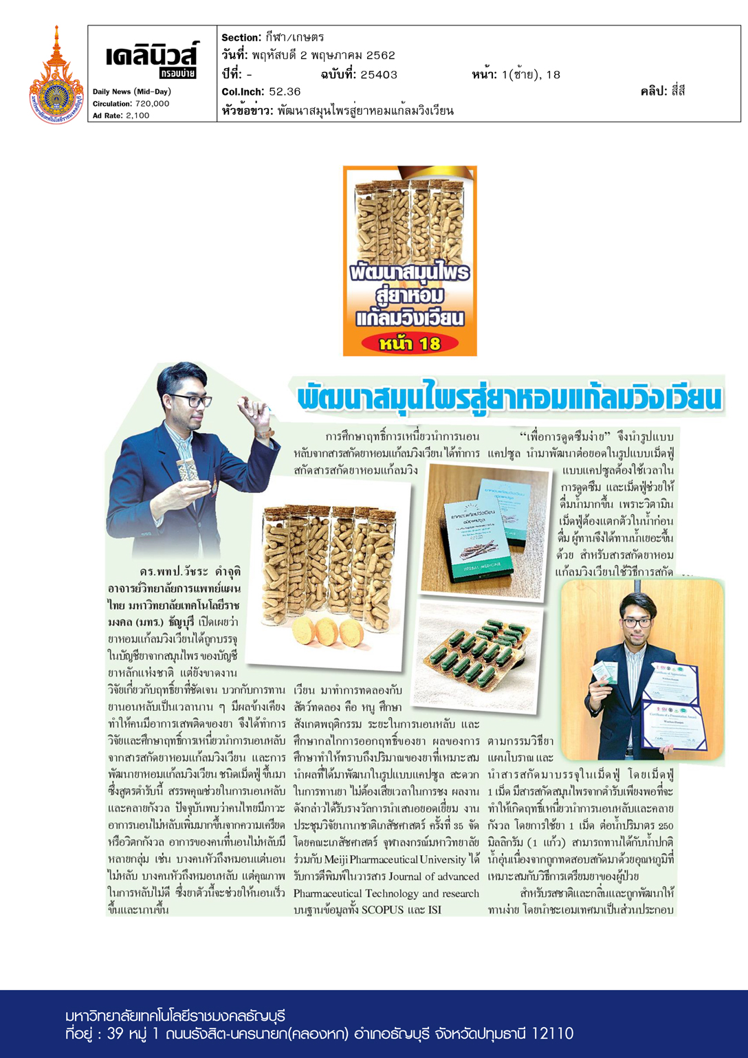 คอลัมน์ กรุงเทพมอนิเตอร์: มทร.ธัญบุรี พัฒนายาหอมชนิดเม็ดฟู่