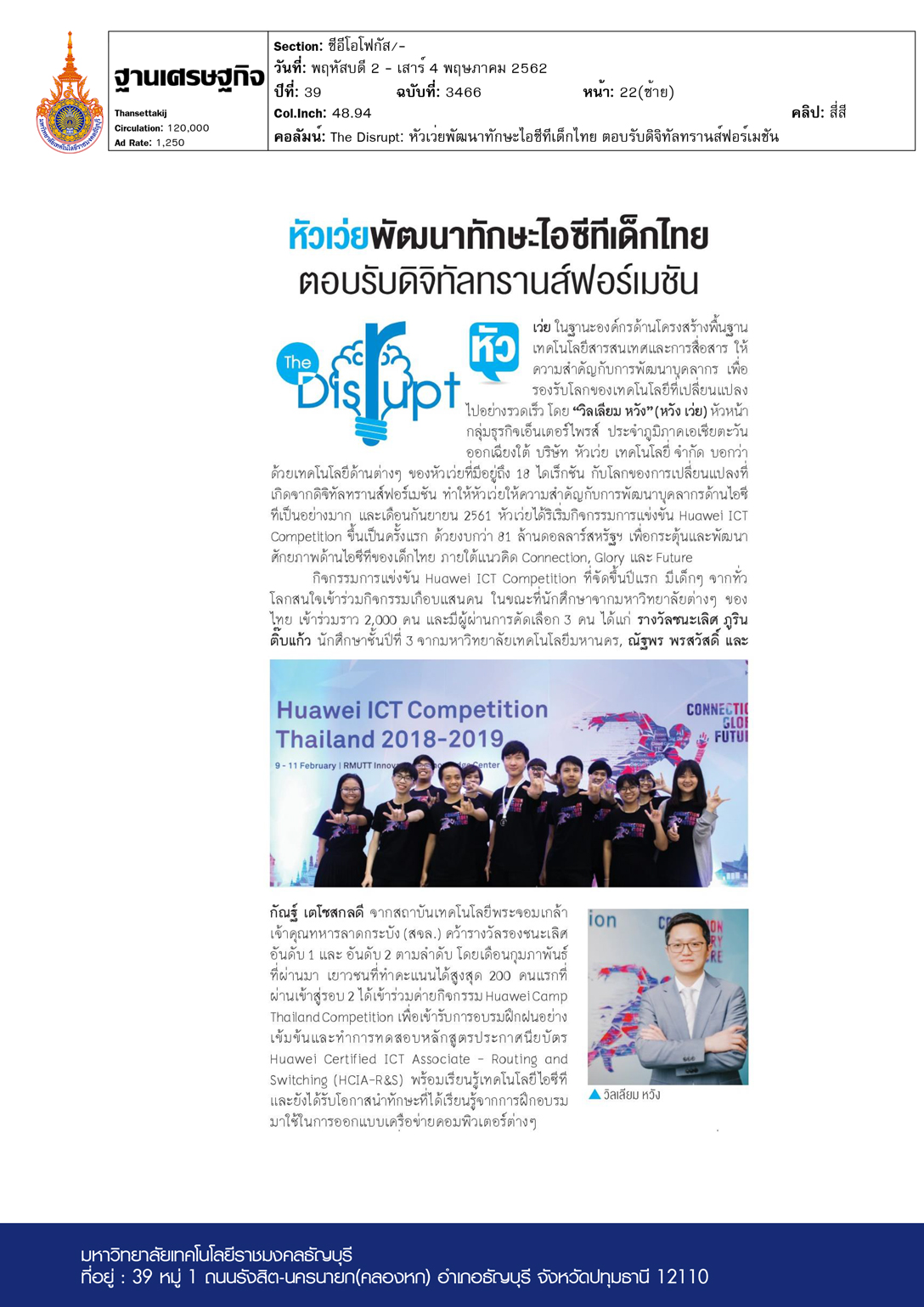 คอลัมน์ The Disrupt: หัวเว่ยพัฒนาทักษะไอซีทีเด็กไทย ตอบรับดิจิทัลทรานส์ฟอร์เมชัน