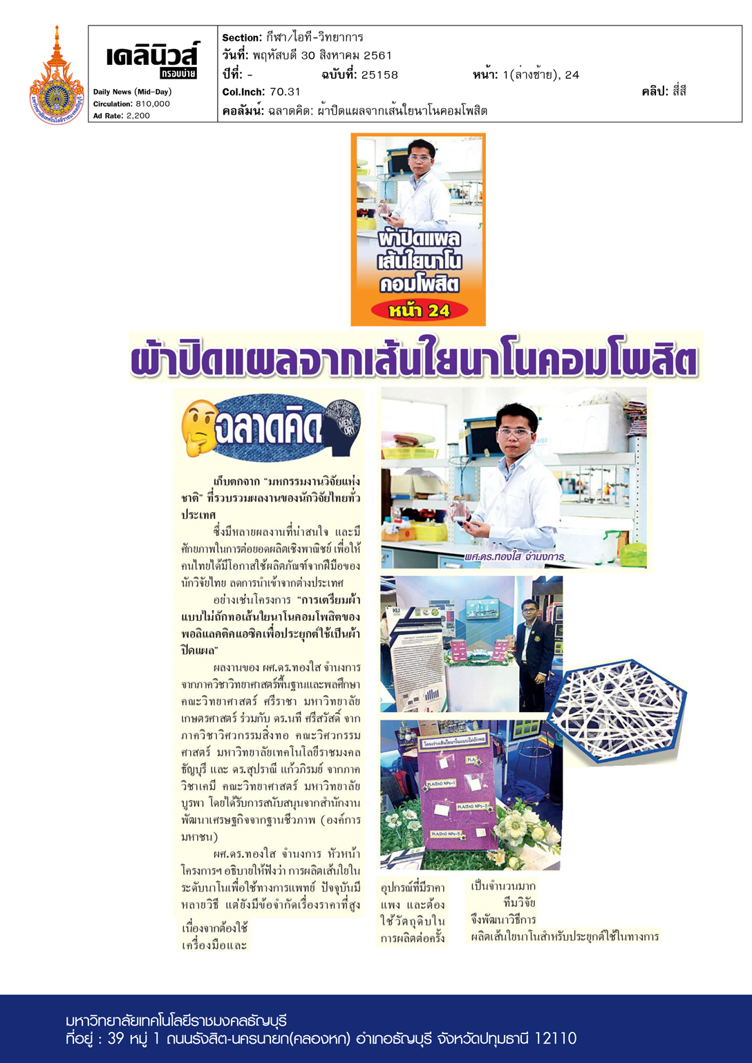 คอลัมน์ ฉลาดคิด: ผ้าปิดแผลจากเส้นใยนาโนคอมโพสิต