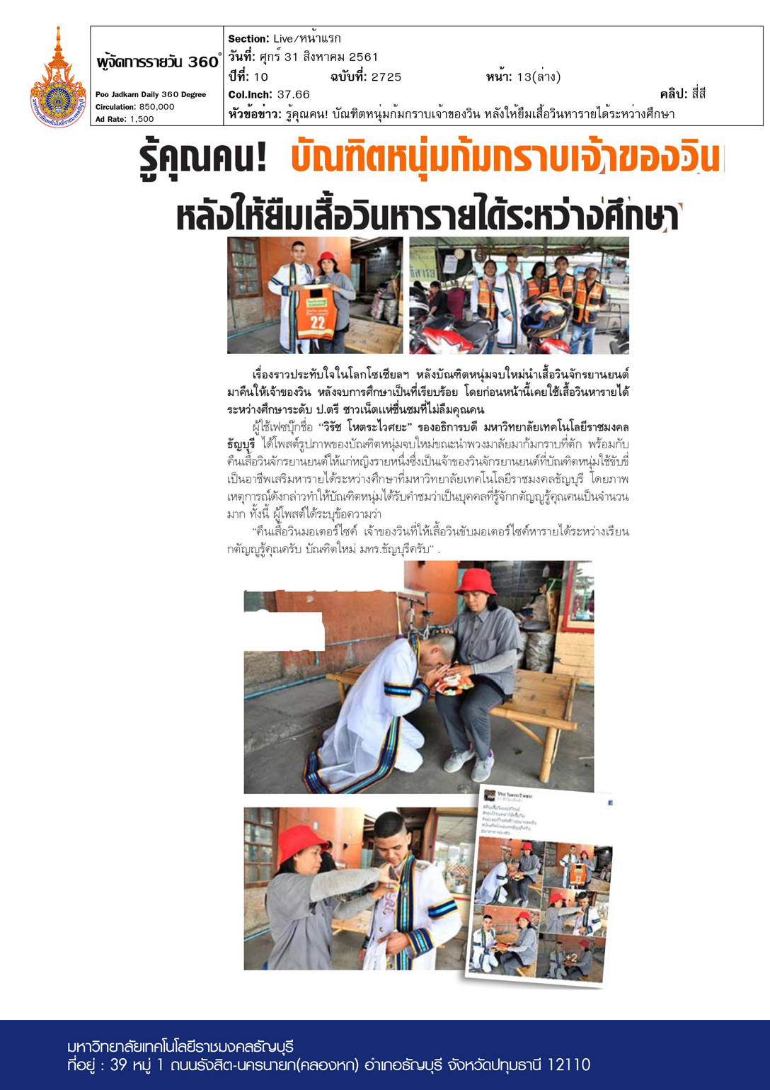 มอเตอร์ไซด์ สร้างอนาคต ความในใจบัณฑิตใหม่ มทร.ธัญบุรี