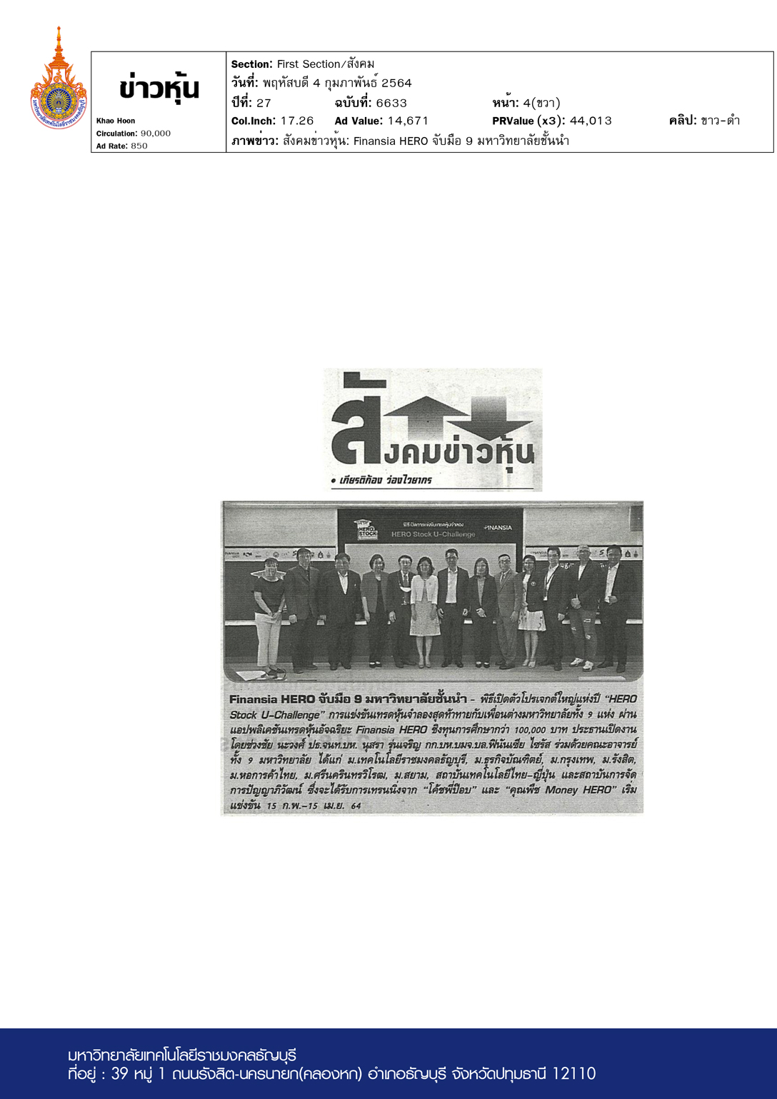 ภาพข่าว: คอลัมน์ สังคมข่าวหุ้น: Finansia HERO จับมือ 9 มหาวิทยาลัยชั้นนำ